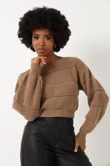 Over The Knee Knitted Heeled Sock Boot - Taupe