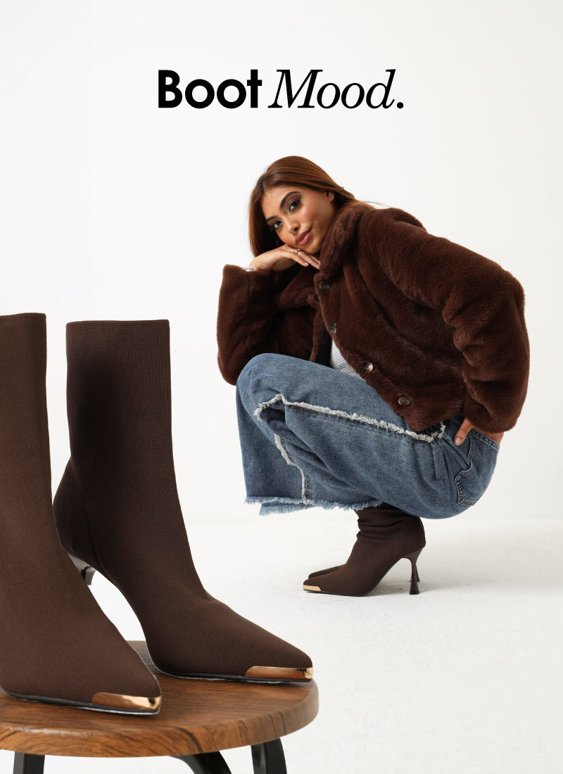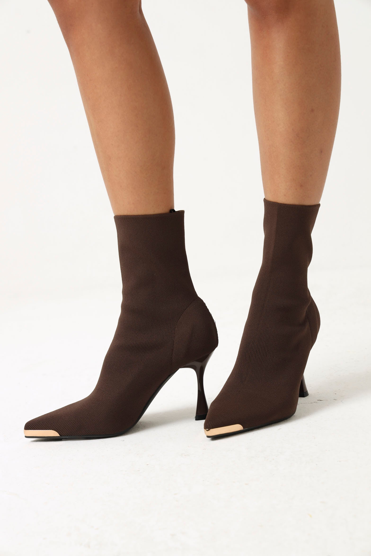 Heeled Mid Calf Pointy Sock Boot - Chocolate