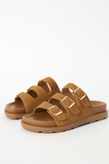 Monogram Print Double Strap Moulded Sandal - Chocolate