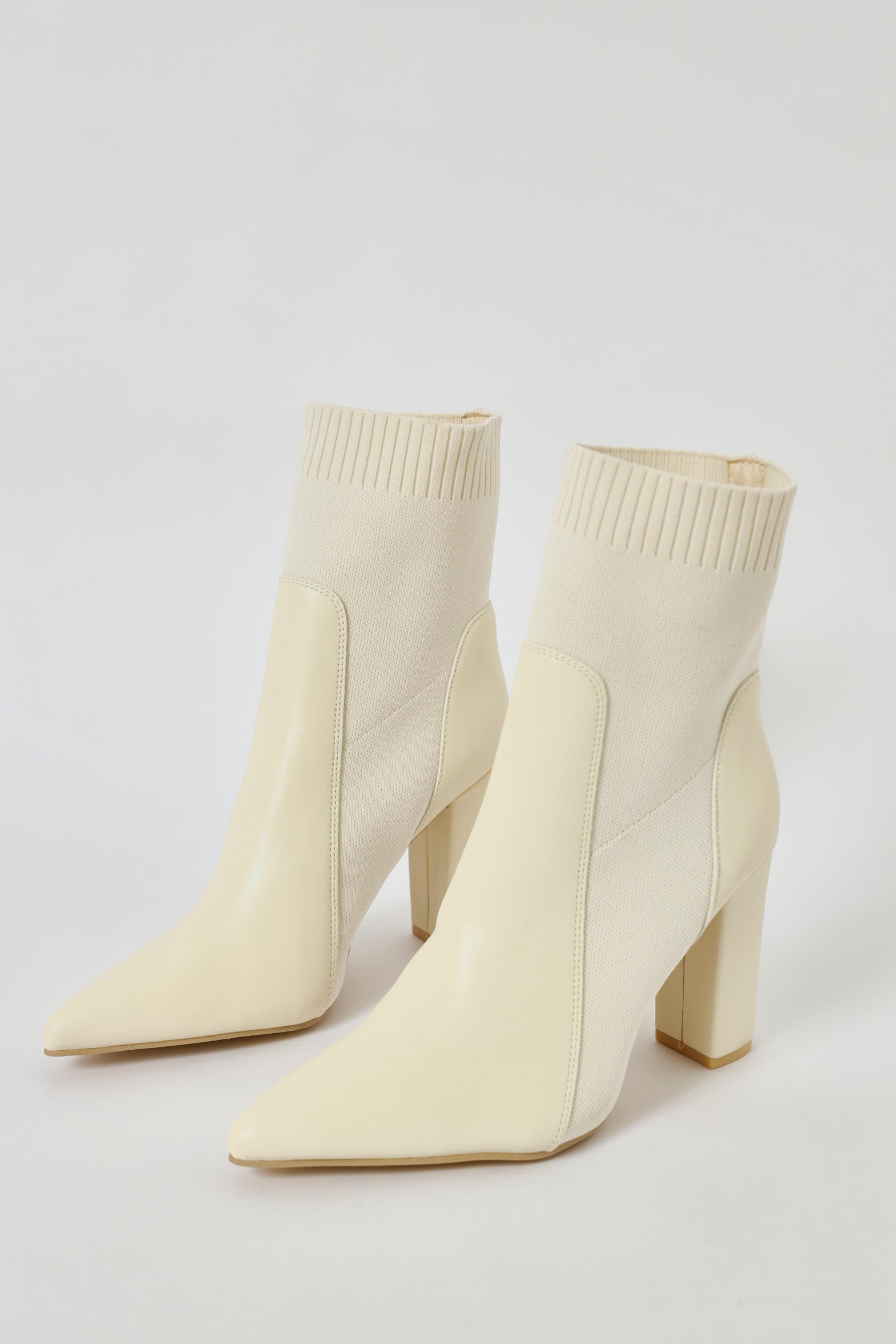 Pointed Ankle Heeled Sock Boot - Off White