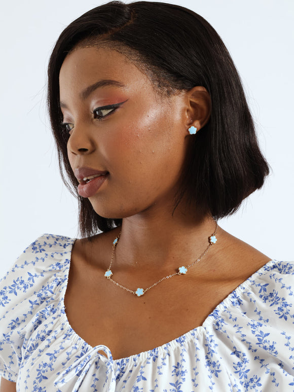Epoxy Flower Necklace & Matching Earrings - Blue