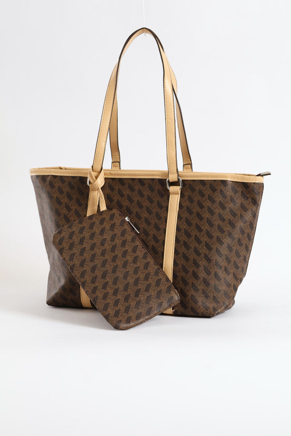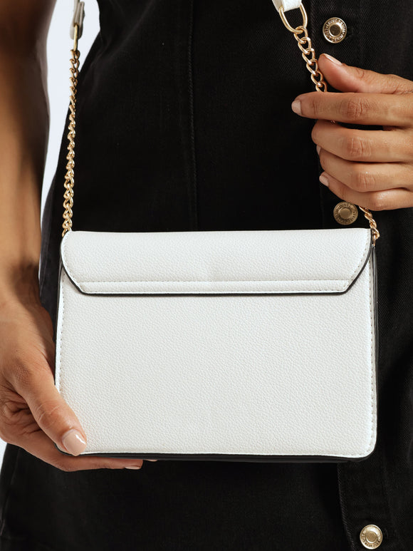 Charm Detail Metal Trim Embossed Monogram Tote Bag - White