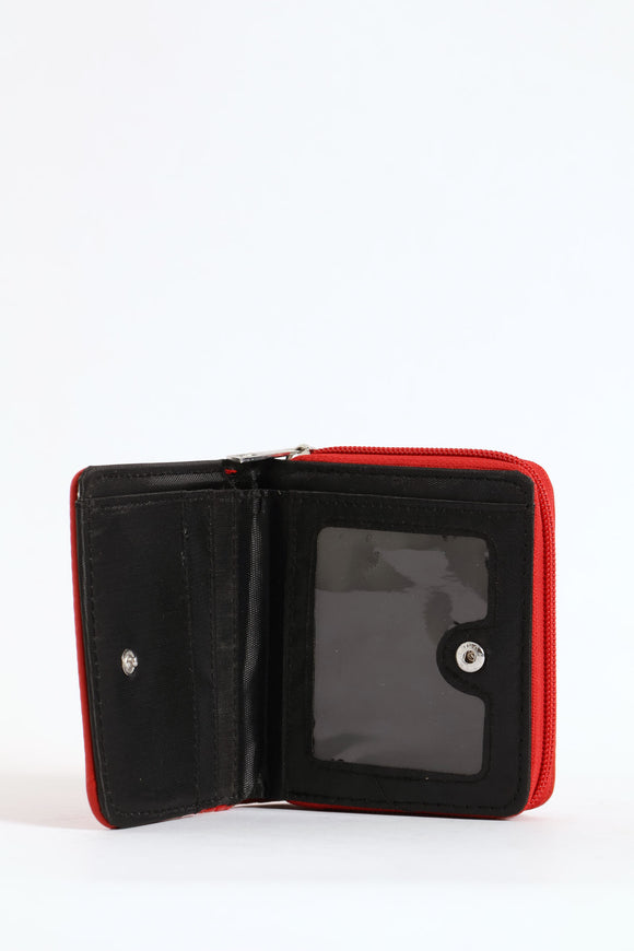 Bee Trim Quilted Zip & Compartment Wallet - Red