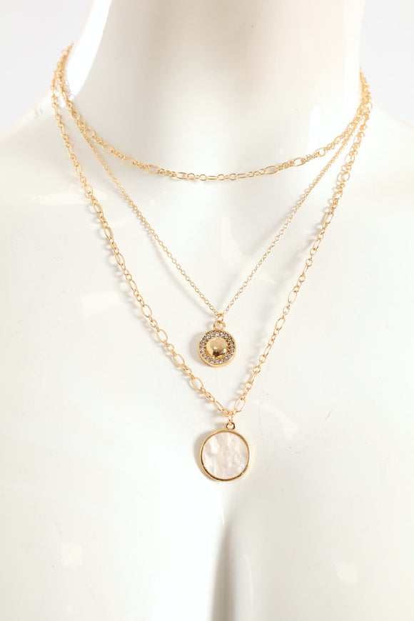 3 Layer Diamante & Epoxy Disk Necklace - Gold