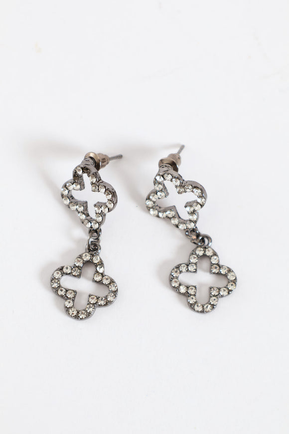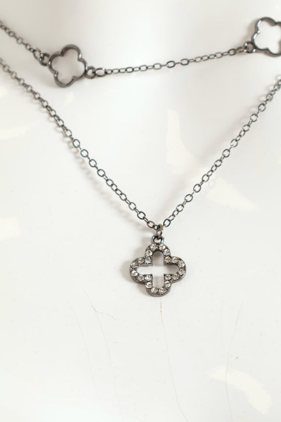 2 Layer Diamante Flower Pendant Necklace & Diamante Earrings - Silver