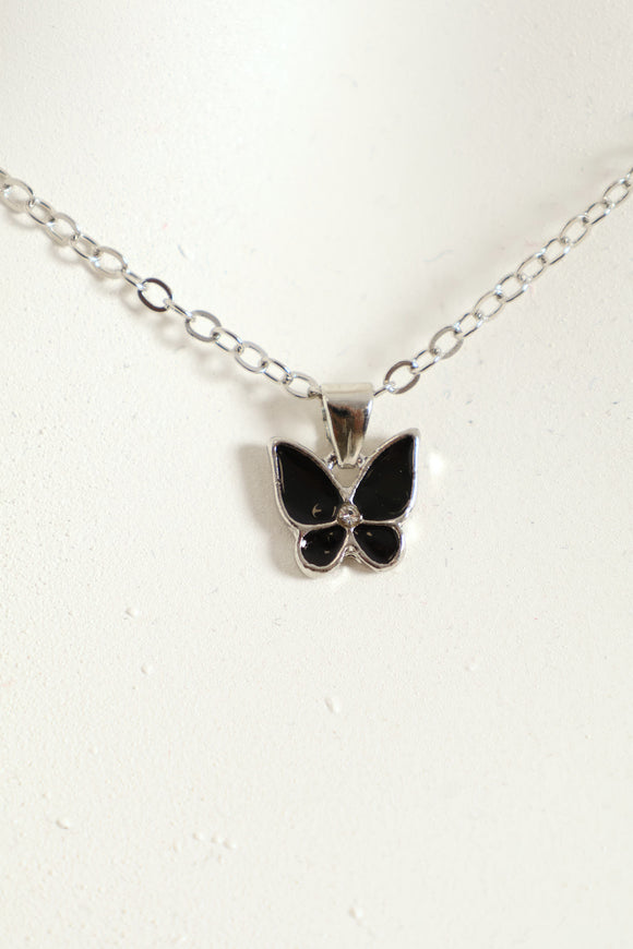 Updated Epoxy Butterfly & Matching Earrings - Black
