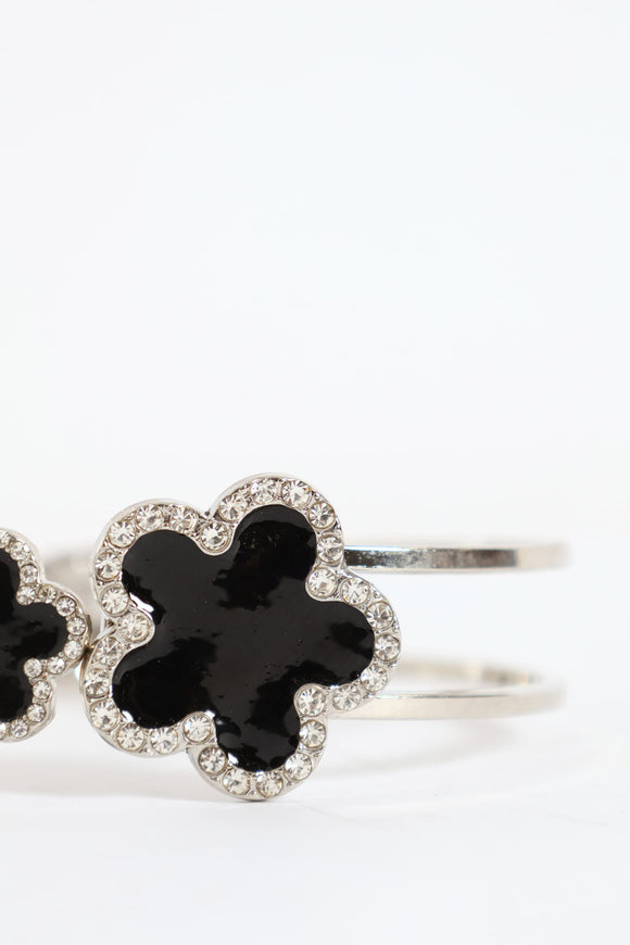 Metal Bar Perspex Flower Charm Tote Bag - Black