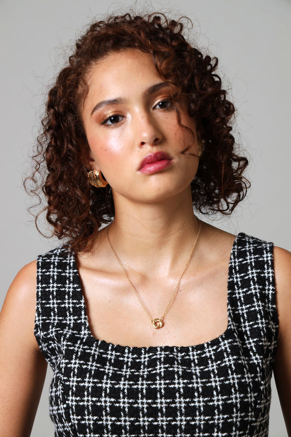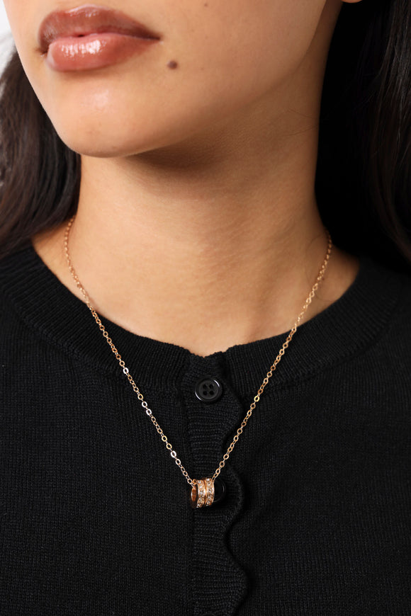 Double Diamante Disc Pendant & Diamante Stud Earrings - Gold