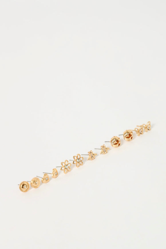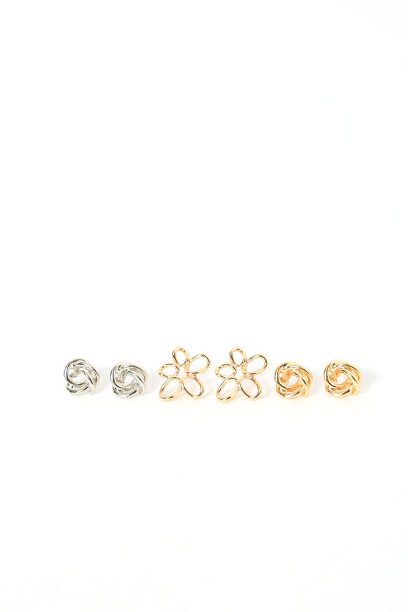 3 Pack Knot & Flower Earrings - Gold/Silver