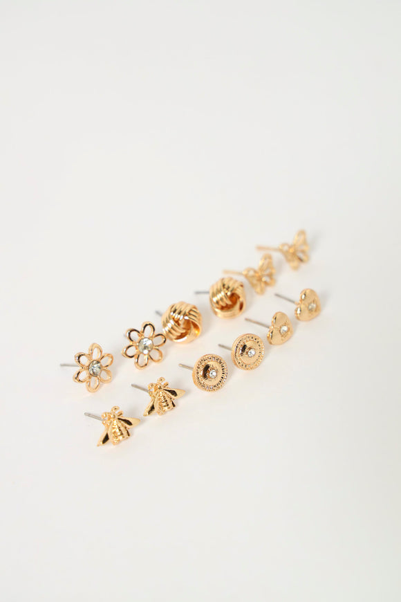 6 Pack Diamante & Novelty Stud Earrings - Multi