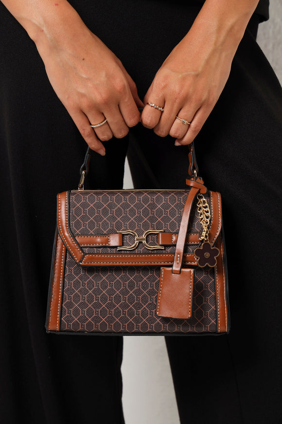 Embossed Monogram Multi Flower Charm Satchel - Brown