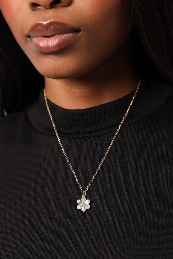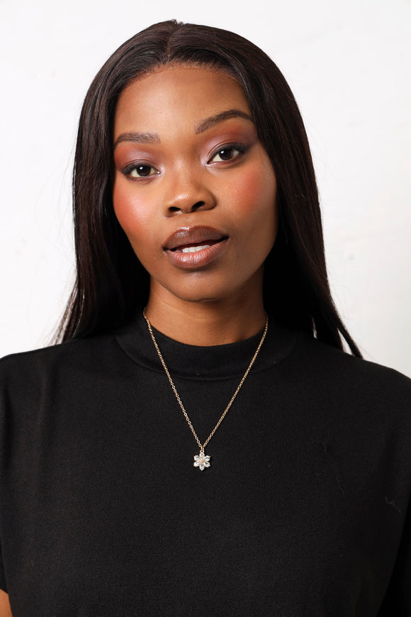 Diamante Flower Pendant Necklace & Matching Earrings - Black/Gold