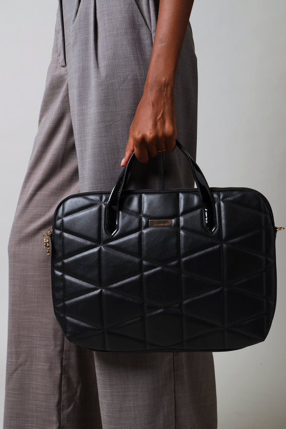 Embossed Logo Monogram Metal Clasp Satchel - Black