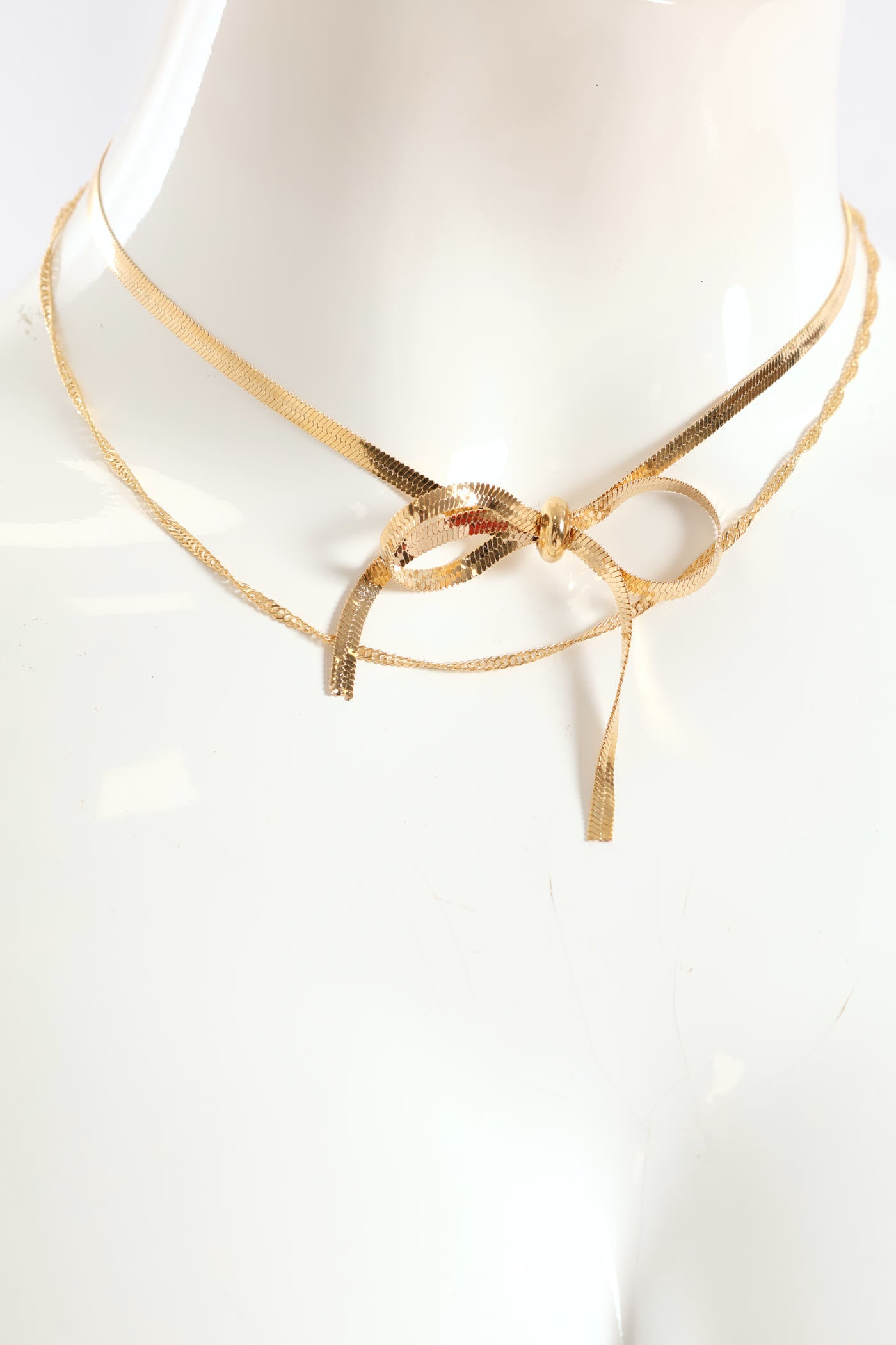 2 Layer Bow Necklace And Matching Earrings - Gold
