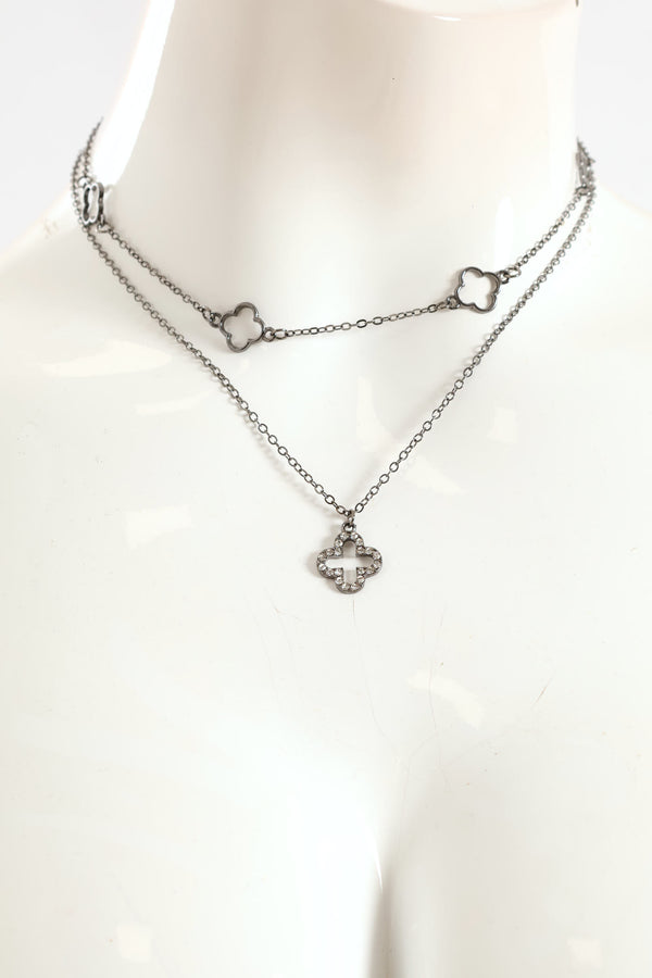 Brighten your day with this playful 2-layer silver necklace featuring sparkling diamante flower pendants, perfectly paired with matching diamante earrings. This set adds a touch of sparkle and charm, making your outfit bloom with fun and elegance.
