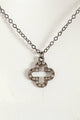 2 Layer Diamante Flower Pendant Necklace & Diamante Earrings - Silver