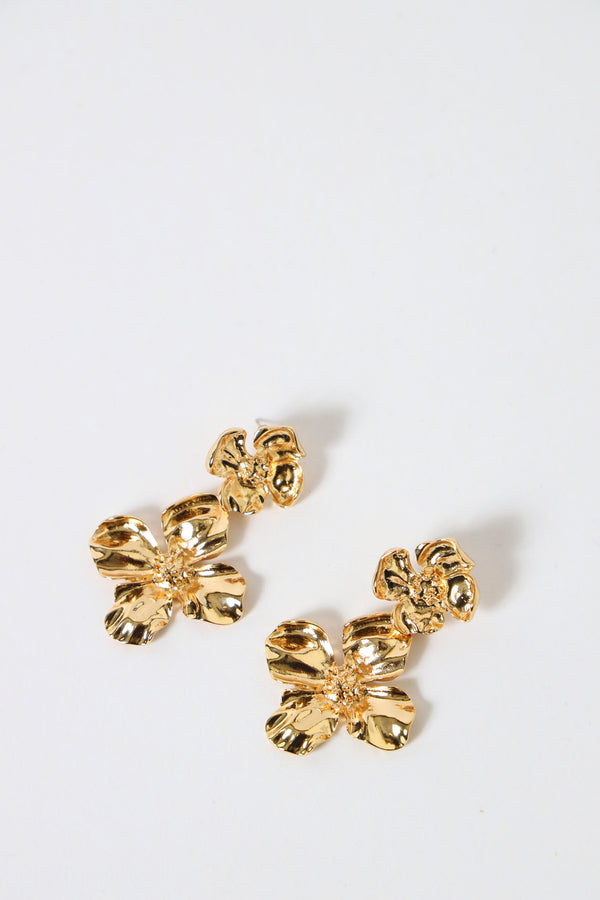 2 Layer Flower Earrings - Gold