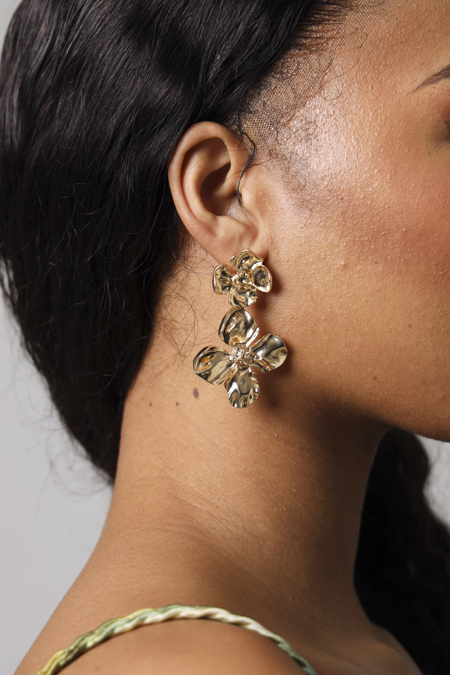 Bloom with confidence in these stunning two-layer flower earrings that bring botanical charm to any look. Crafted in gleaming gold, each petal is delicately layered to create dimension and movement that catches the light beautifully. Perfect for adding a touch of nature-inspired elegance to your everyday style or special occasions. These versatile beauties work just as well with casual outfits as they do with dressed-up ensembles. Let your ears do the talking with florals that feel fresh, fun, and undeniably fabulous.