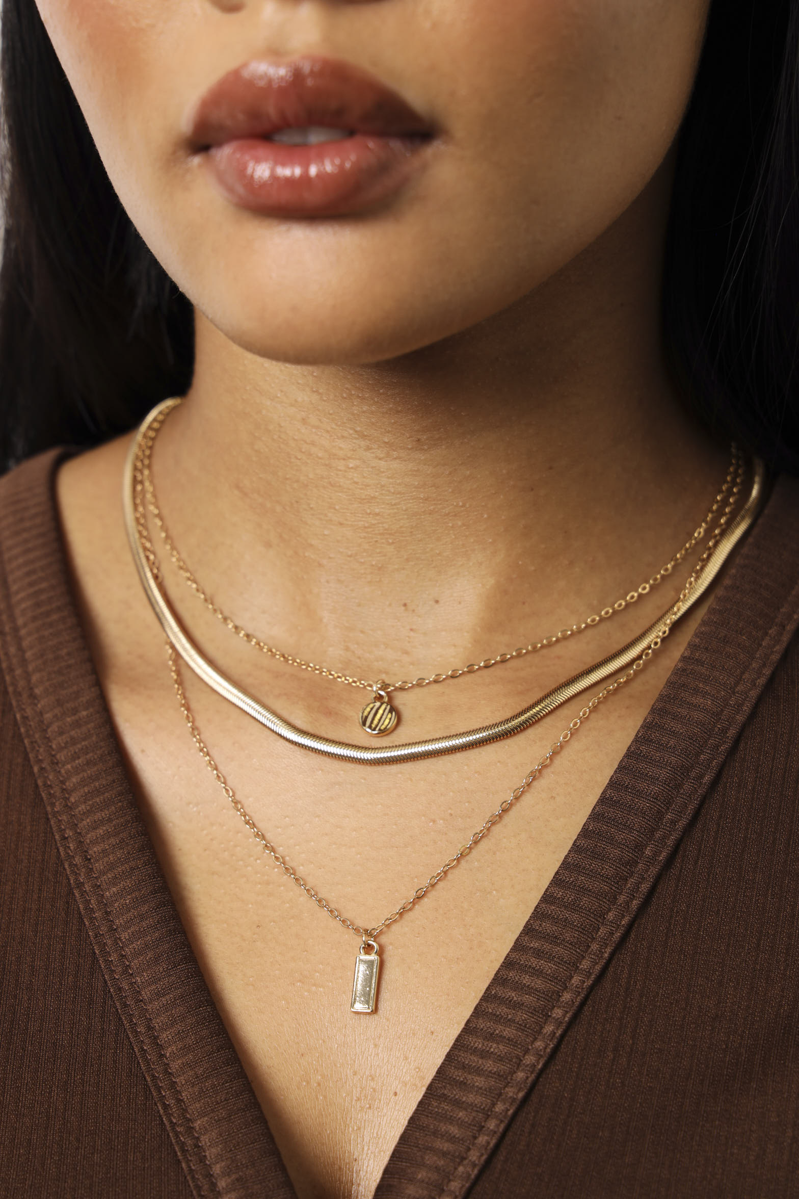 3 Layer Snake Chain & Pendant Necklace - Gold