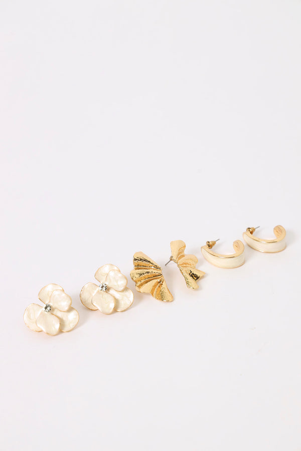 3 Pack Epoxy Statement Flower Earrings - Gold