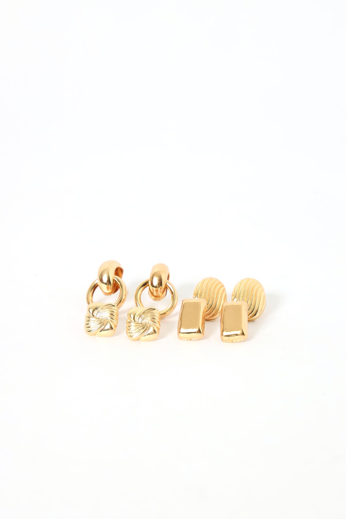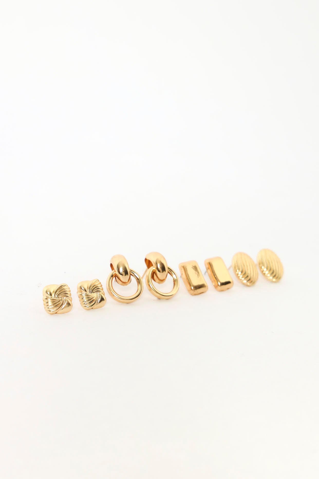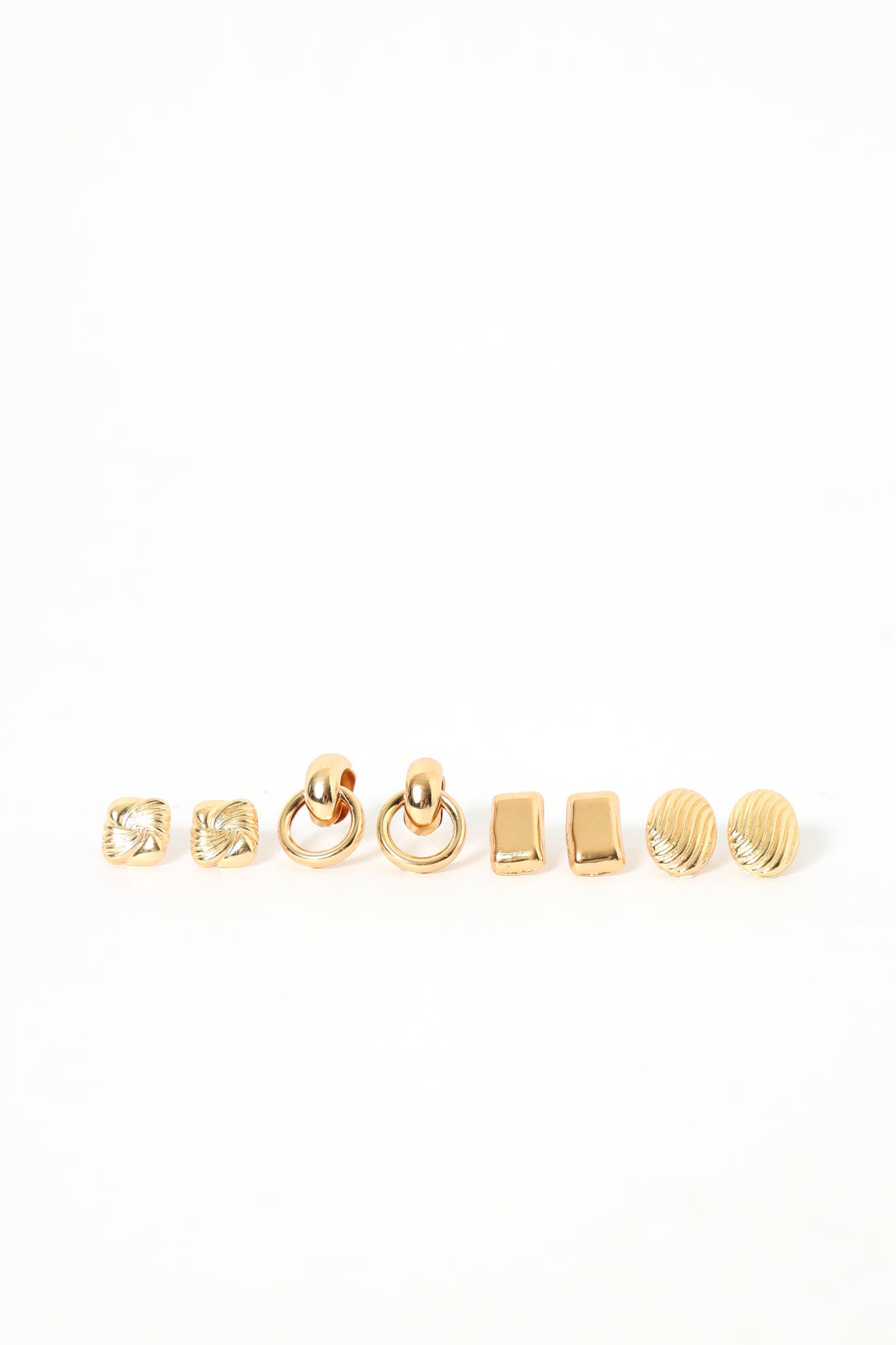 Mix and match your way to endless style with this fabulous 4-pack variety earrings collection in stunning gold. Each pair brings its own personality from classic studs to statement drops giving you the perfect earring for every mood and occasion. Whether you're dressing up for a night out or keeping it casual, you'll have a golden option ready to go. Stack them, swap them, and let your ears do the talking!