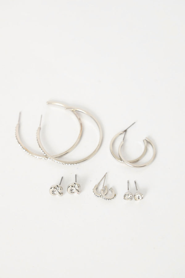 5 Pack Variety Hoops & Studs - Silver