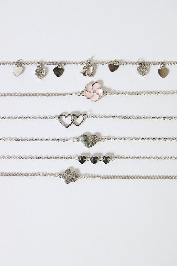 Stack your wrist with sparkle in this fabulous six-pack of diamante heart bracelets in shimmering silver. Mix, match, and layer them for a personalized look that's uniquely you, or share the love with friends who deserve their own dose of glitter. Each bracelet features eye-catching diamante hearts that catch the light beautifully, making them perfect for everyday wear or special occasions. Whether you're building your accessory collection or looking for party favors that actually impress, this bundle delivers maximum shine for minimal fuss. Wear them solo or stacked—either way, your wrists will be absolutely dazzling.