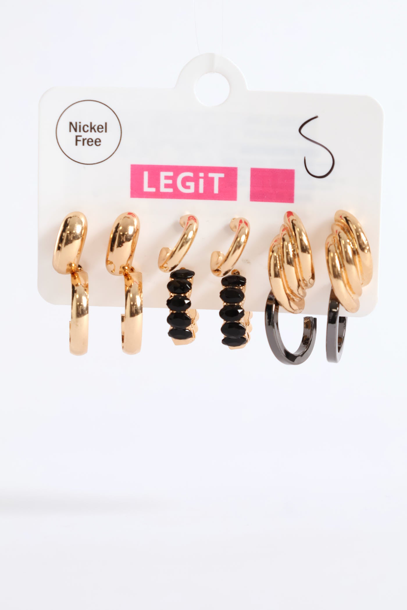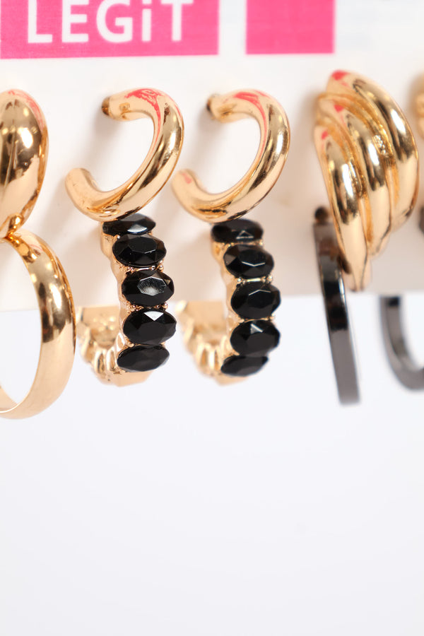 6 Pack Multi Gem And Epoxy Hoop Earrings - Gold