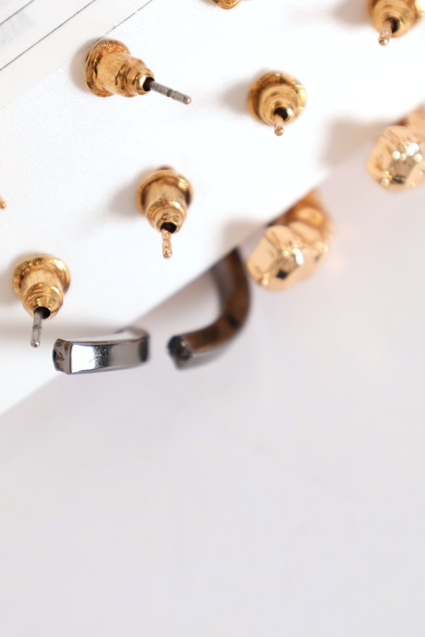 Stack your ear game with this fabulous 6-pack of Multi Gem and Epoxy Hoop Earrings in radiant gold! Mix and match these beauties throughout your week—each pair features eye-catching gemstone and epoxy details that sparkle with personality. From minimalist vibes to bold statement looks, you've got options galore. Perfect for switching up your style daily without breaking the bank, this collection lets you express yourself in endless ways. Lightweight and comfortable, these hoops are ready to become your new favorites.