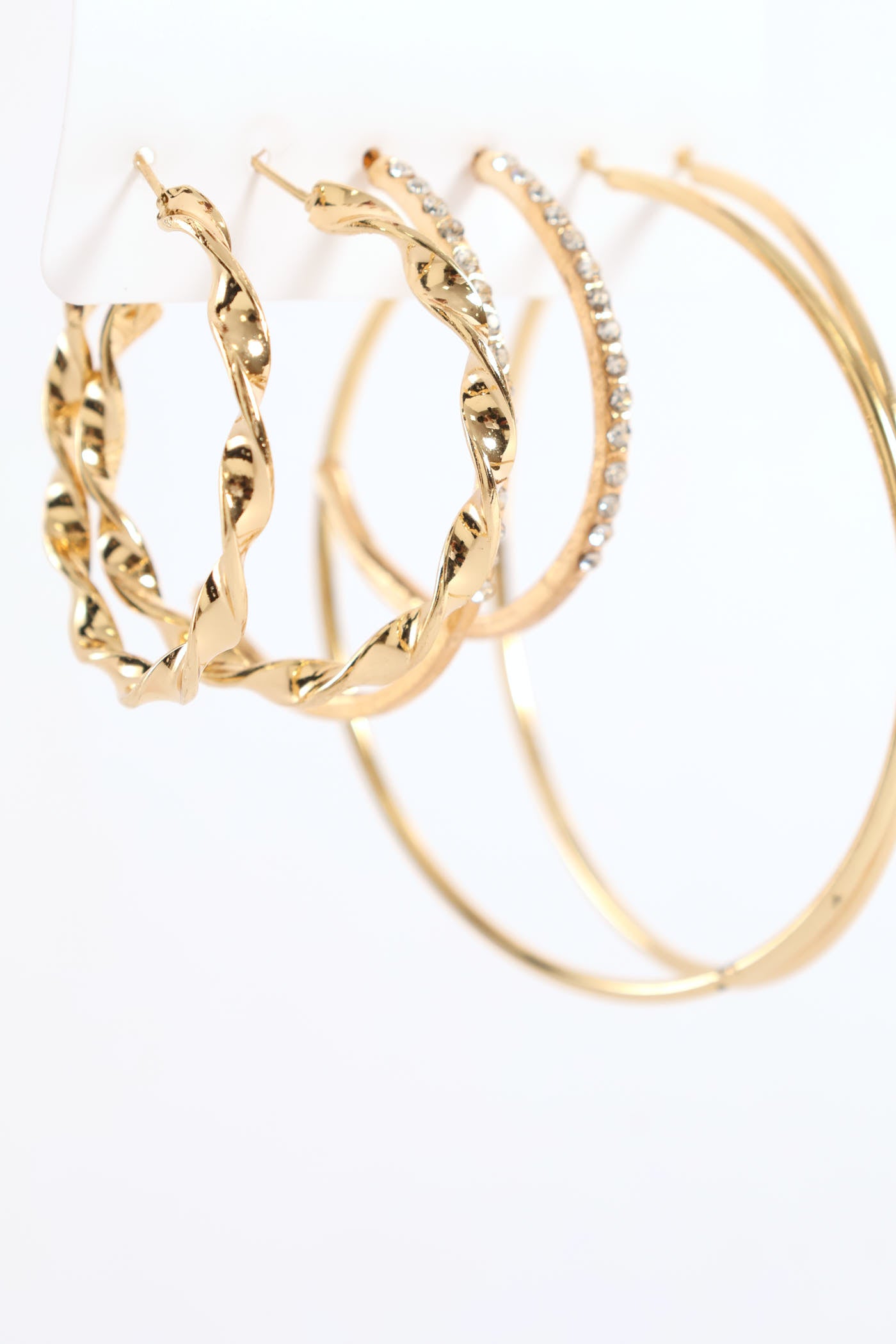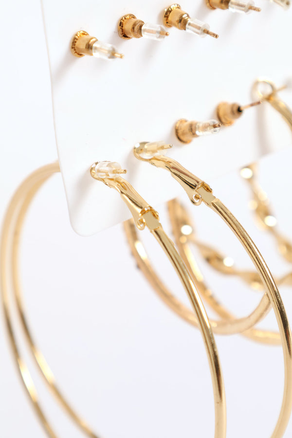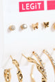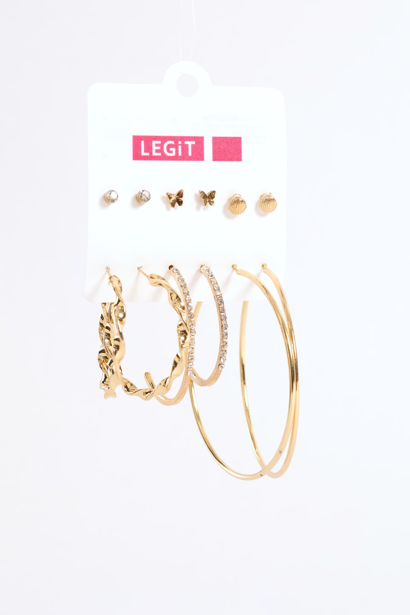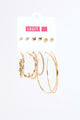6 Pack Novelty Studs & Hoop Earrings - Gold