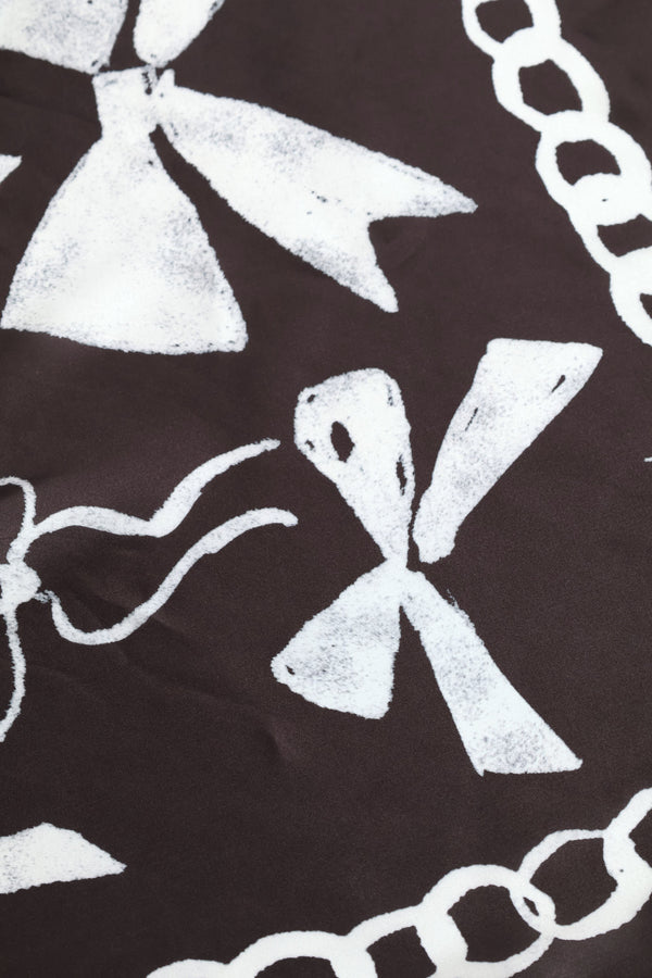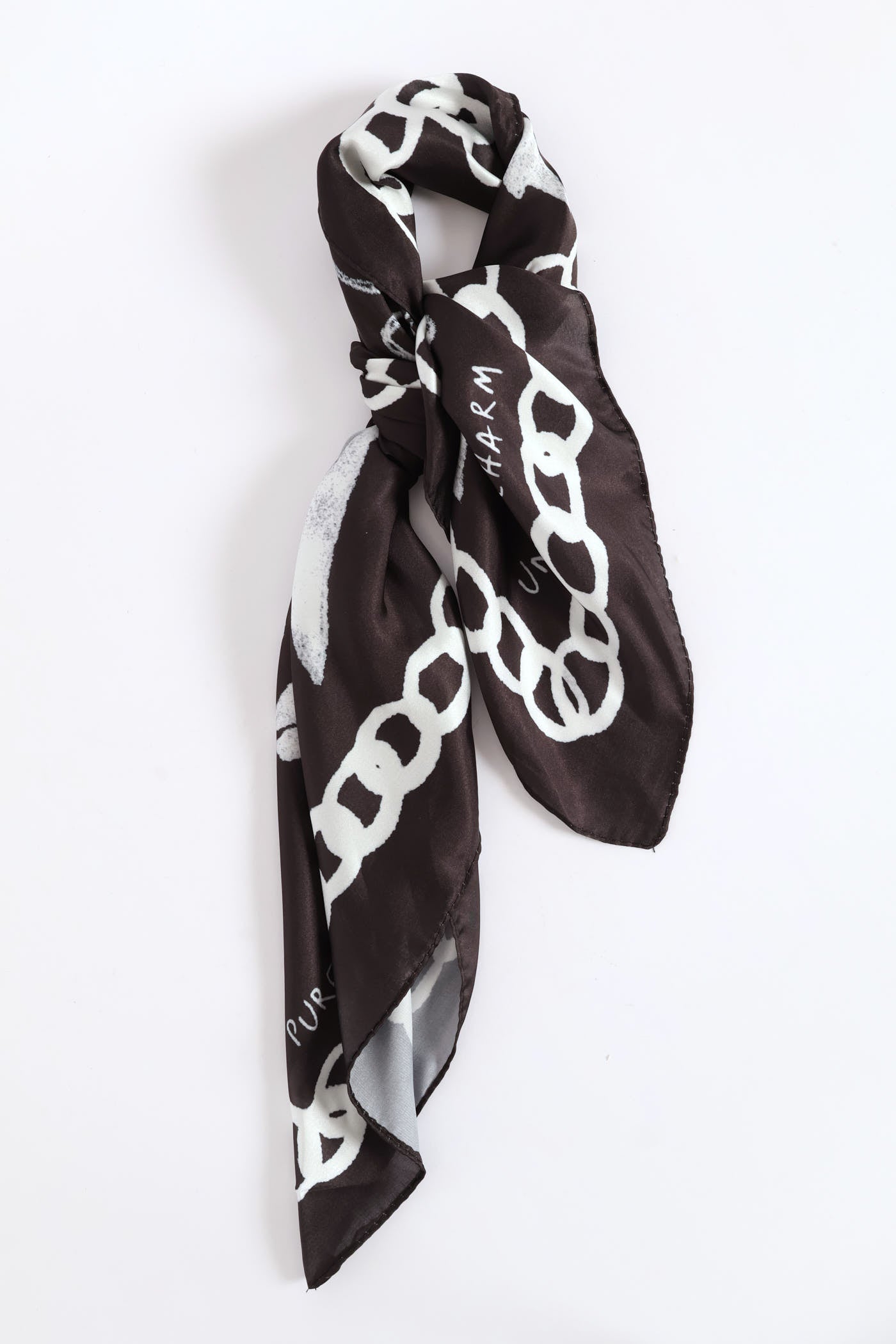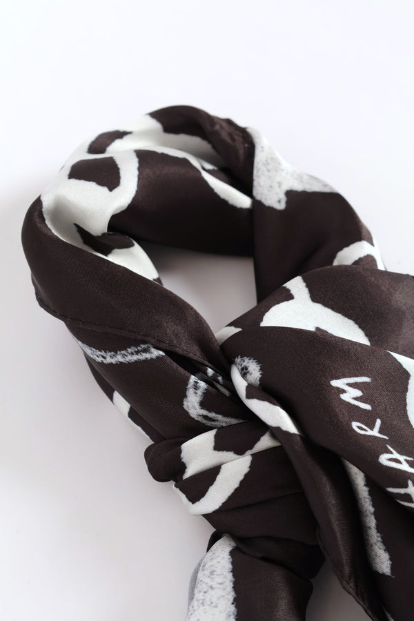Bow Slogan Satin Scarf - Black