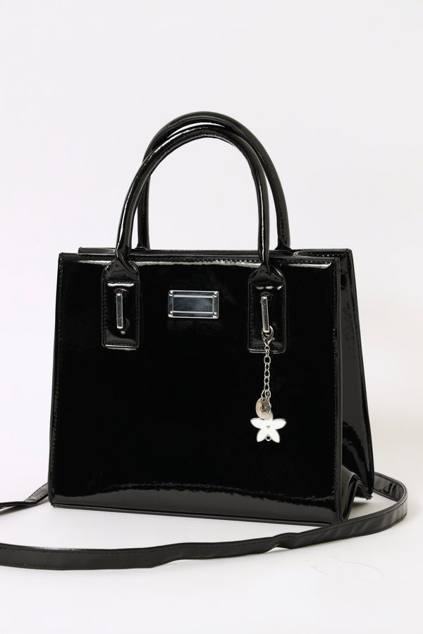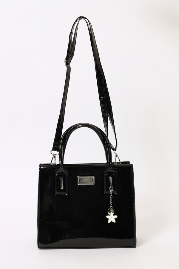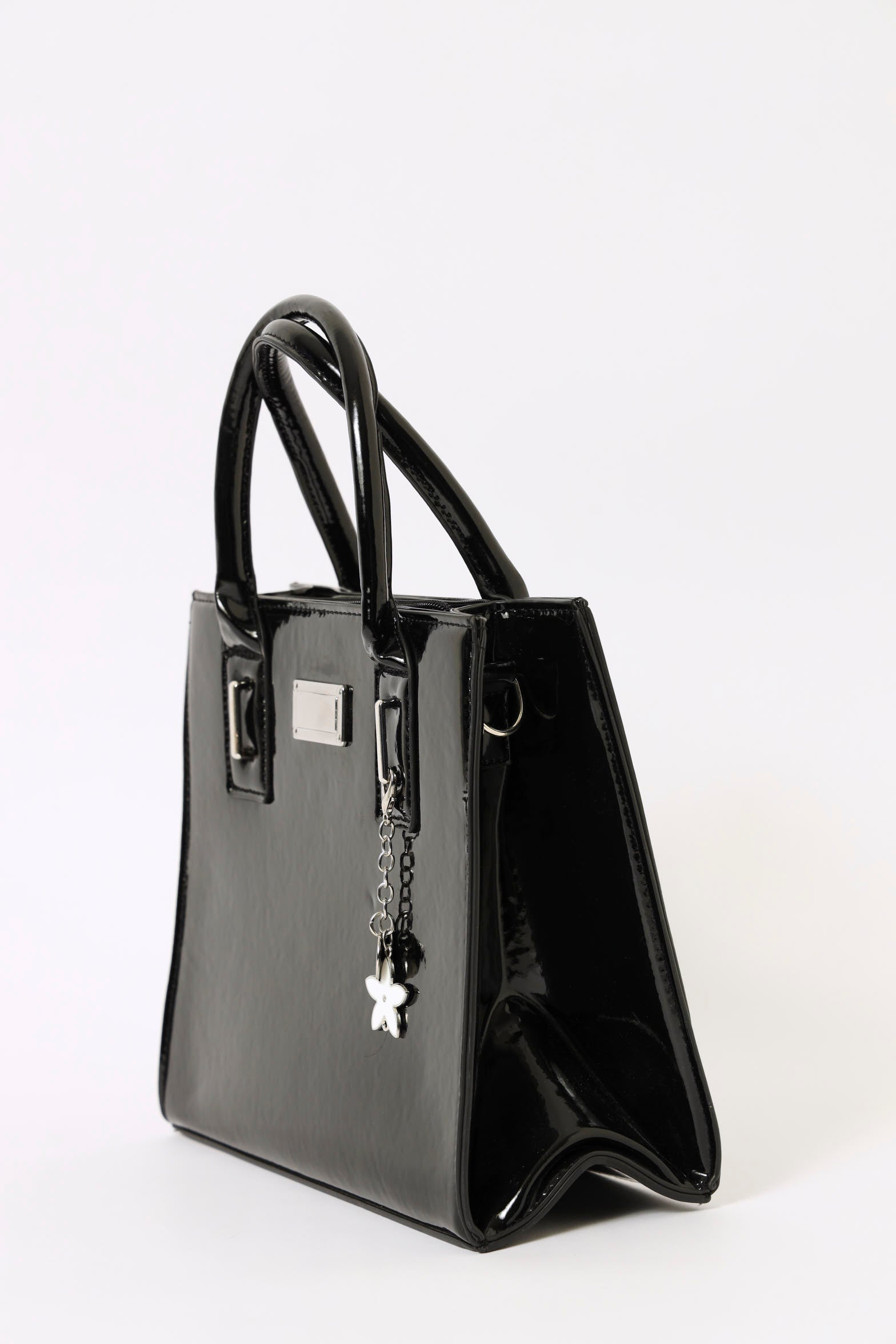 Charm Detail Metal Trim Tote Bag - Black/Silver