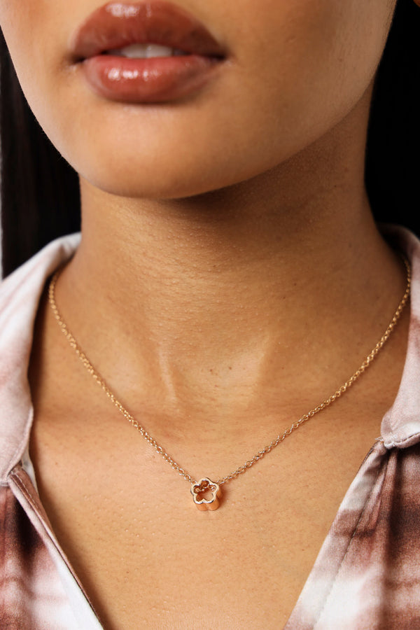 Bloom with confidence in this charming delicate flower pendant necklace, crafted in radiant gold. This dainty piece brings a touch of botanical beauty to your everyday look, whether you're dressing up or keeping it casual. The intricate flower design adds a whimsical, feminine flair that works perfectly layered with other necklaces or worn solo as your statement piece. Lightweight and comfortable for all-day wear, it's the perfect accessory for nature lovers and style enthusiasts alike. Let your inner garden goddess flourish!