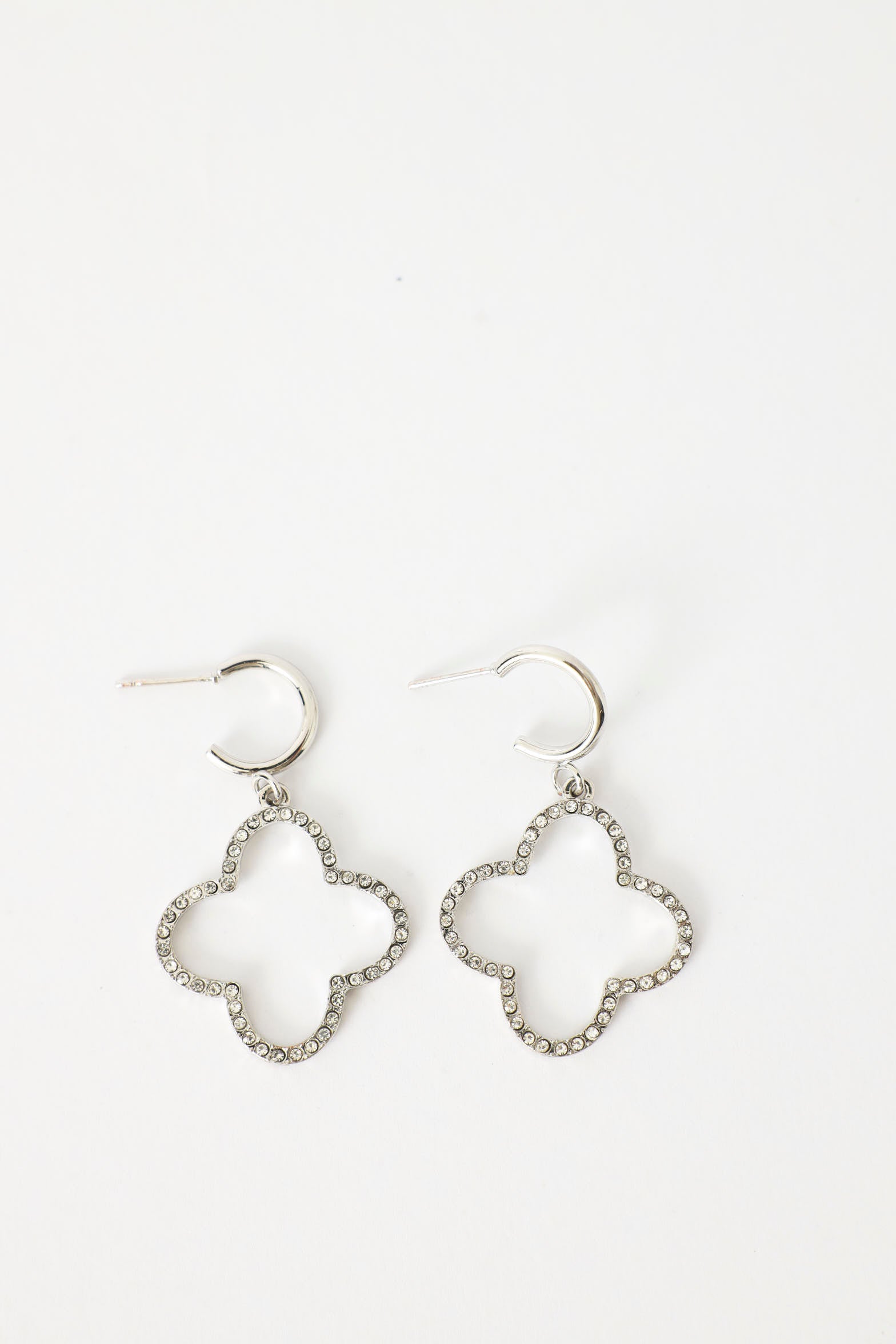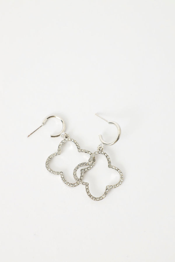 Diamante 4 Leaf Flower Earrings - Silver