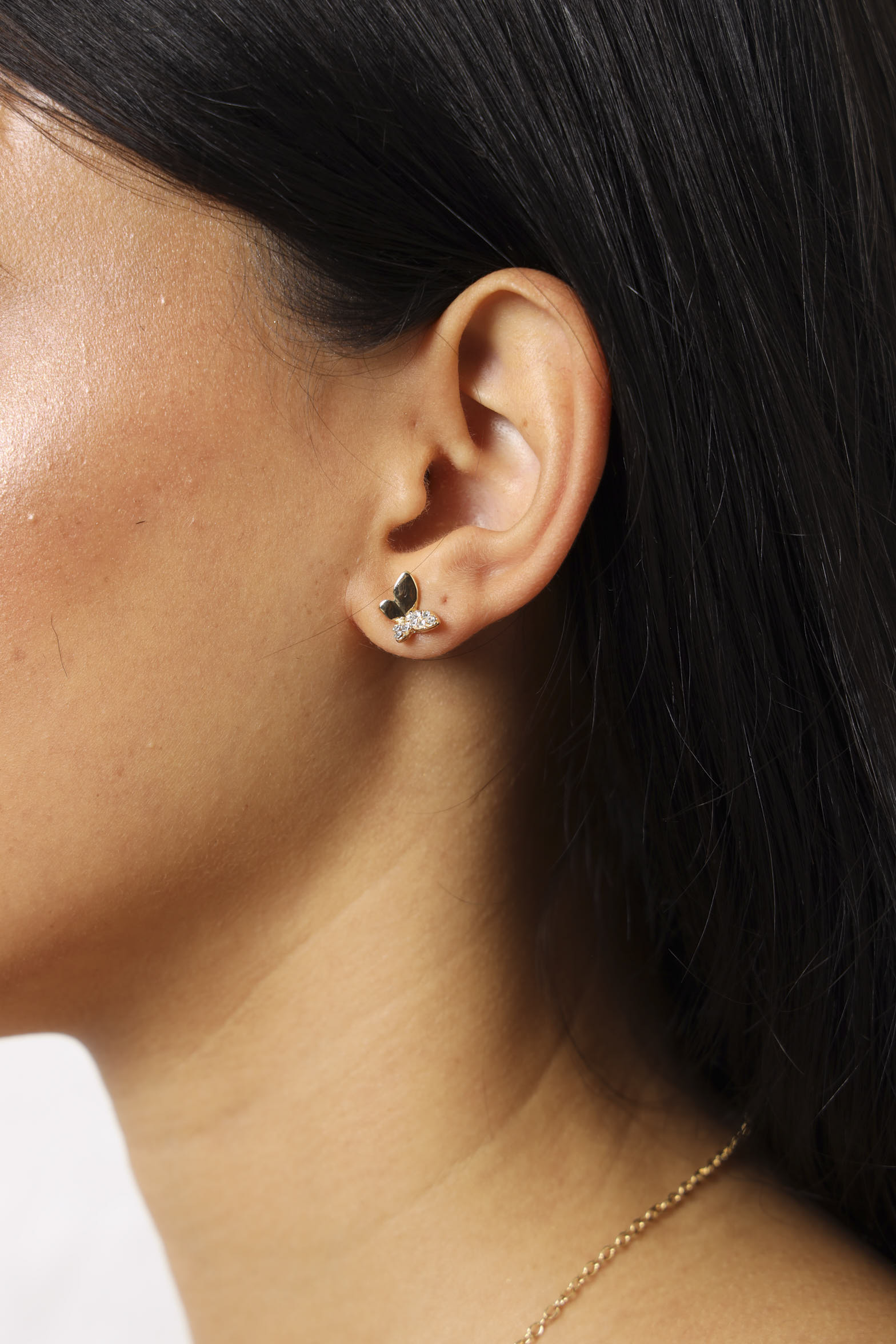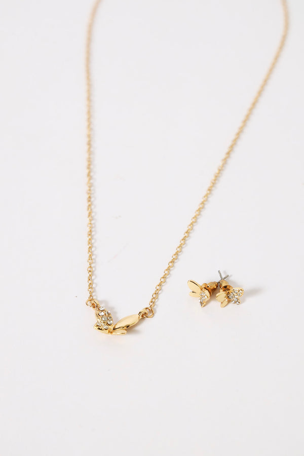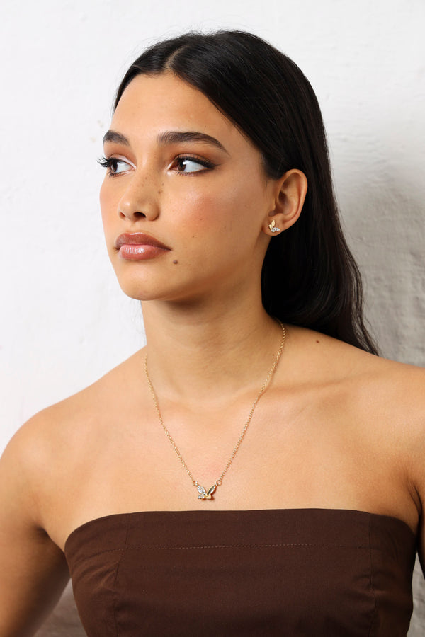 Diamante Butterfly Pendant & Matching Studs - Gold