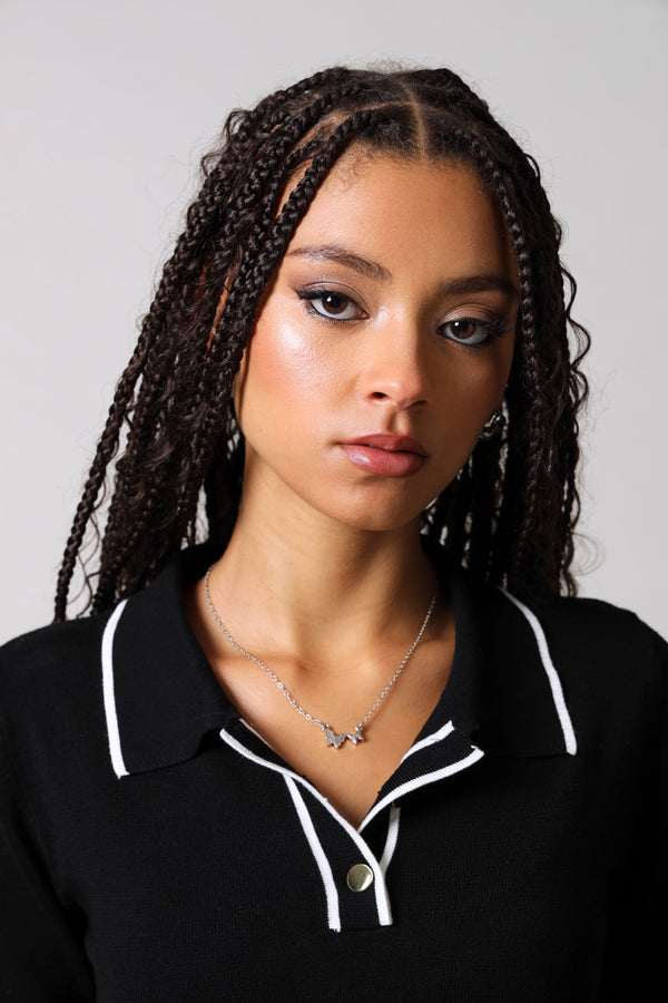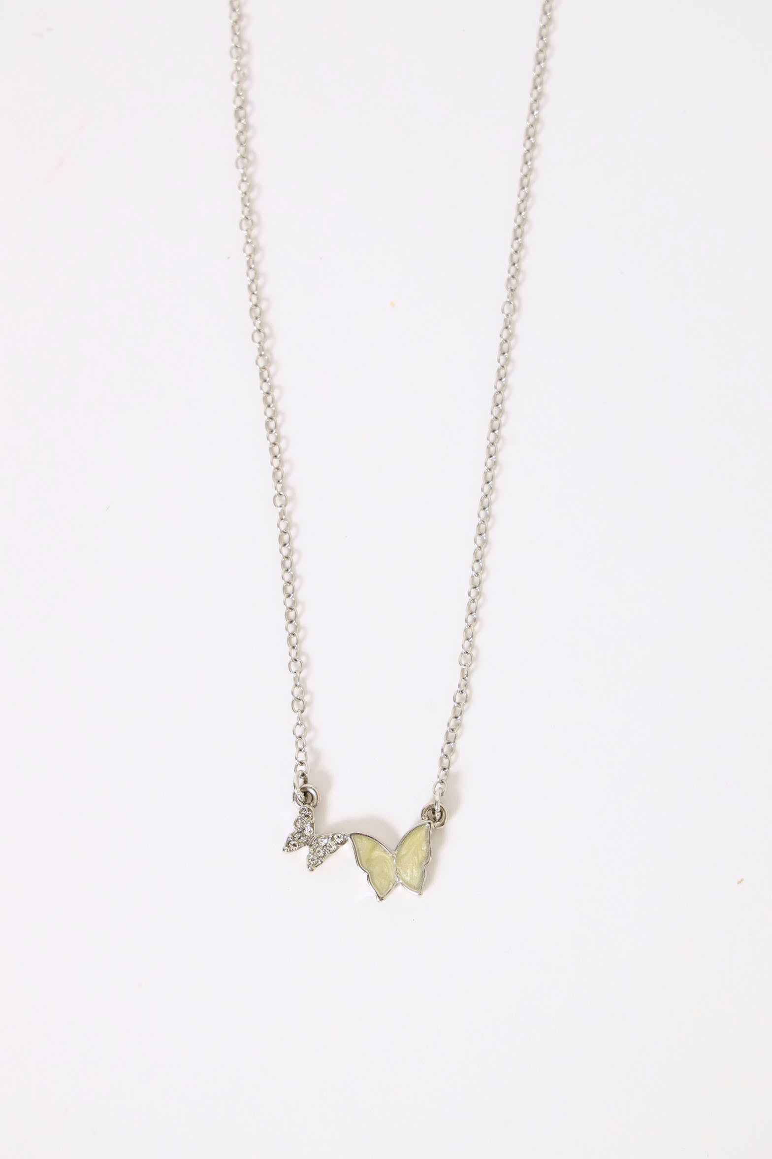 Double Diamante & Epoxy Butterfly Necklace - Silver