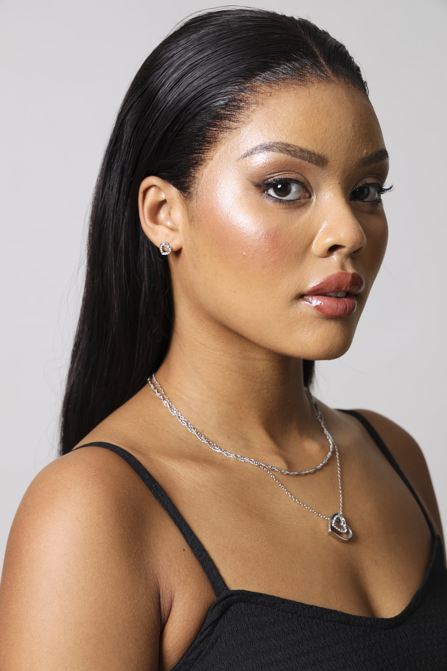 Wear your heart on your sleeve with this stunning silver jewellery set featuring a double-layer diamante heart pendant and matching earrings. The intricate layered design creates depth and dimension, while the sparkling diamante details catch every light for maximum glamour. This coordinated set is perfect for expressing your romantic side or gifting to someone you adore. The matching earrings ensure a polished, put-together look that works for both everyday wear and special occasions. Layer the pendant with other necklaces for a trendy stacked effect, or let it shine solo as your statement piece. Whether you're celebrating love, friendship, or simply want to add a touch of sparkle to your day, this heart collection delivers charm and elegance in equal measure. Because the best accessories are the ones that make you smile.