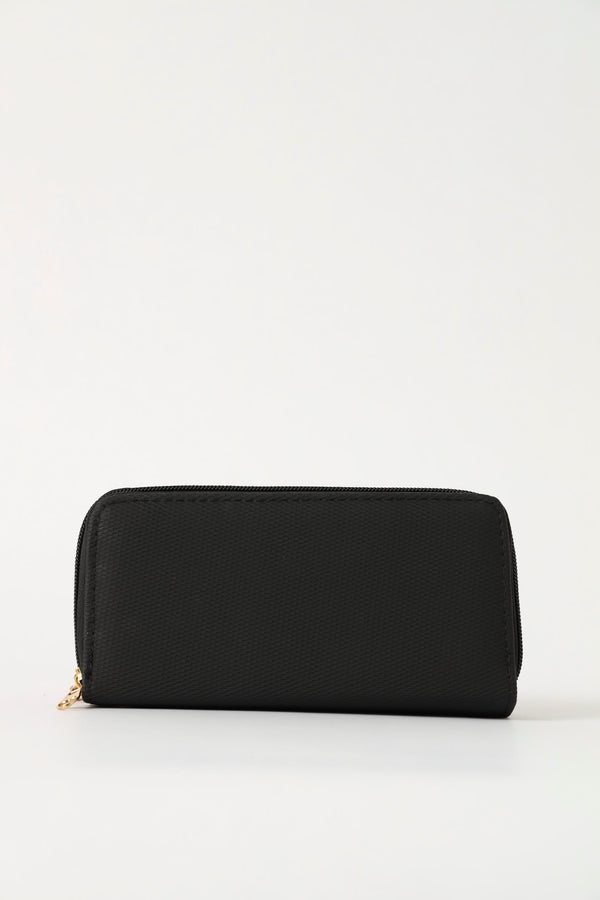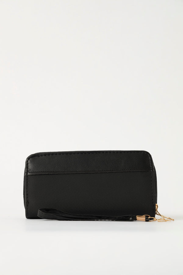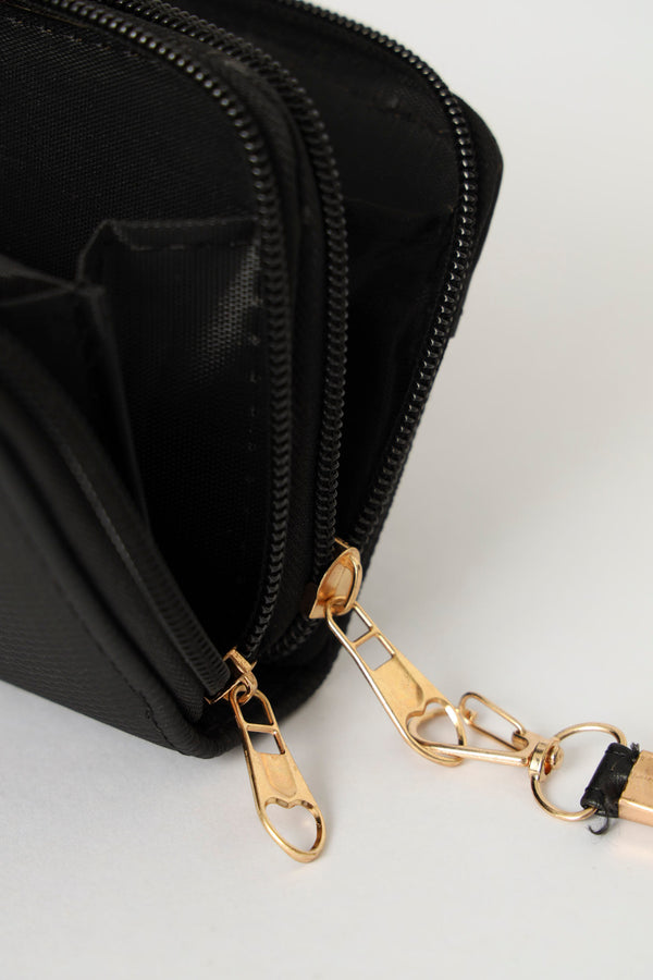 Double Zip Large Wallet With Handle - Black
