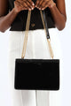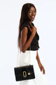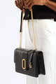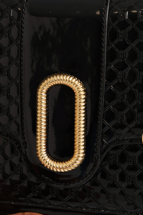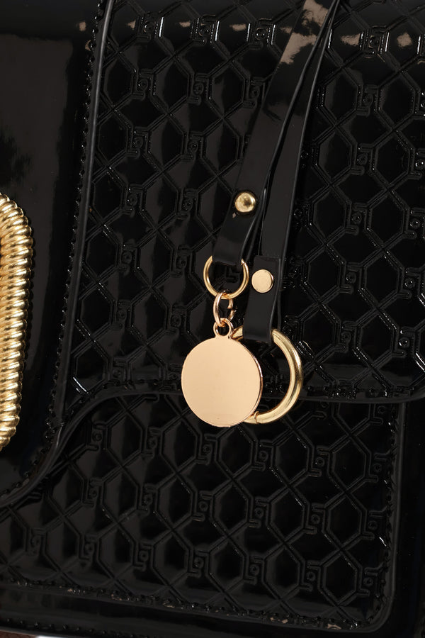 Embossed Monogram Metal Logo Charm Detail Satchel Bag - Black