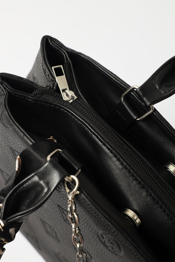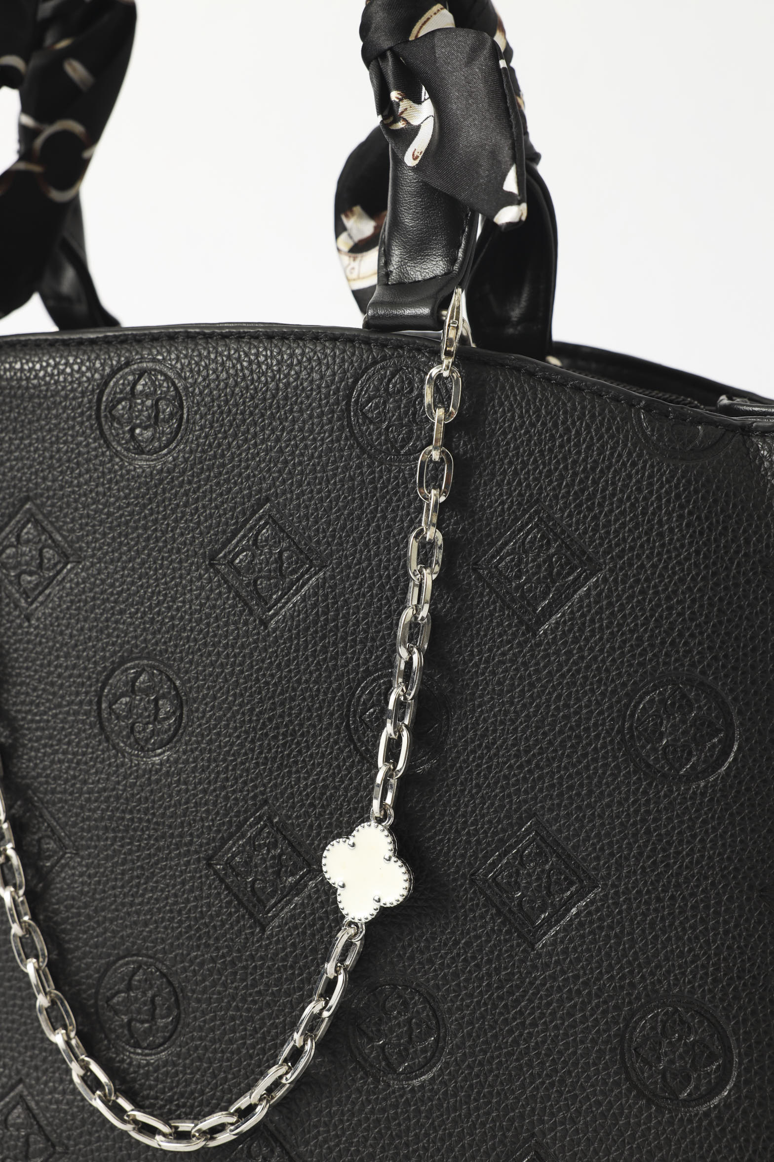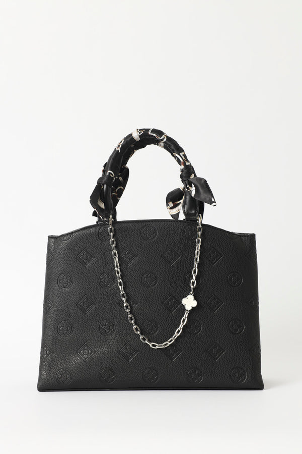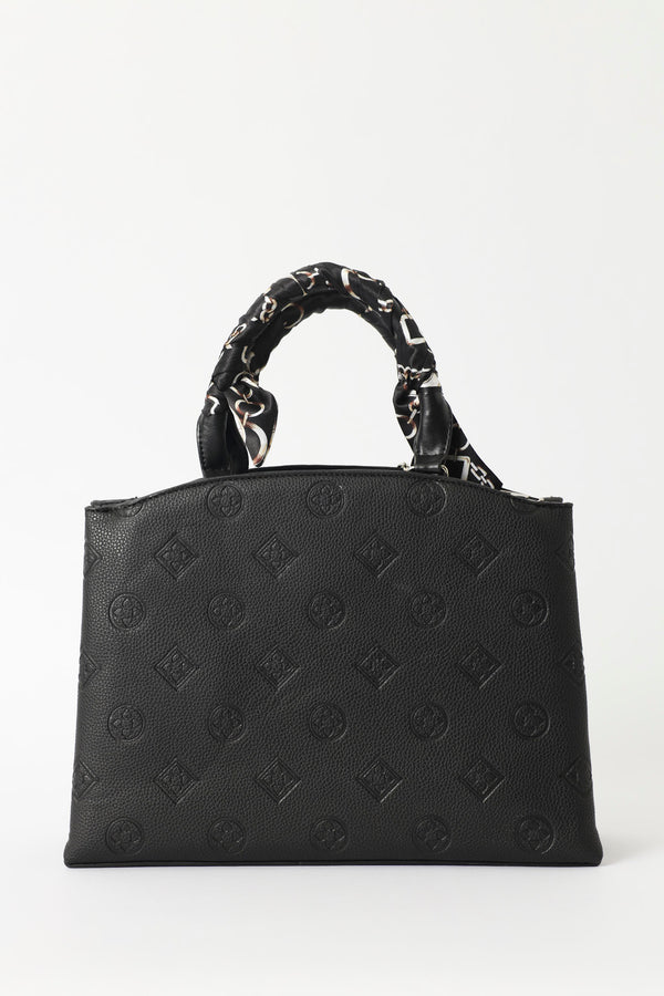 Embossed Scarf Detail Shopper Bag - Black/Gold