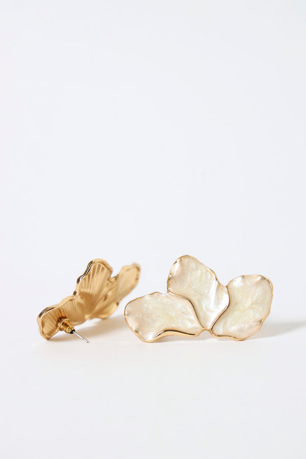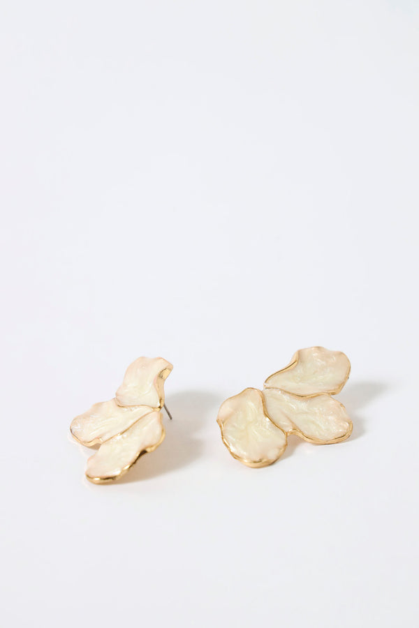 Epoxy Half Flower Statement Earrings - Cream
