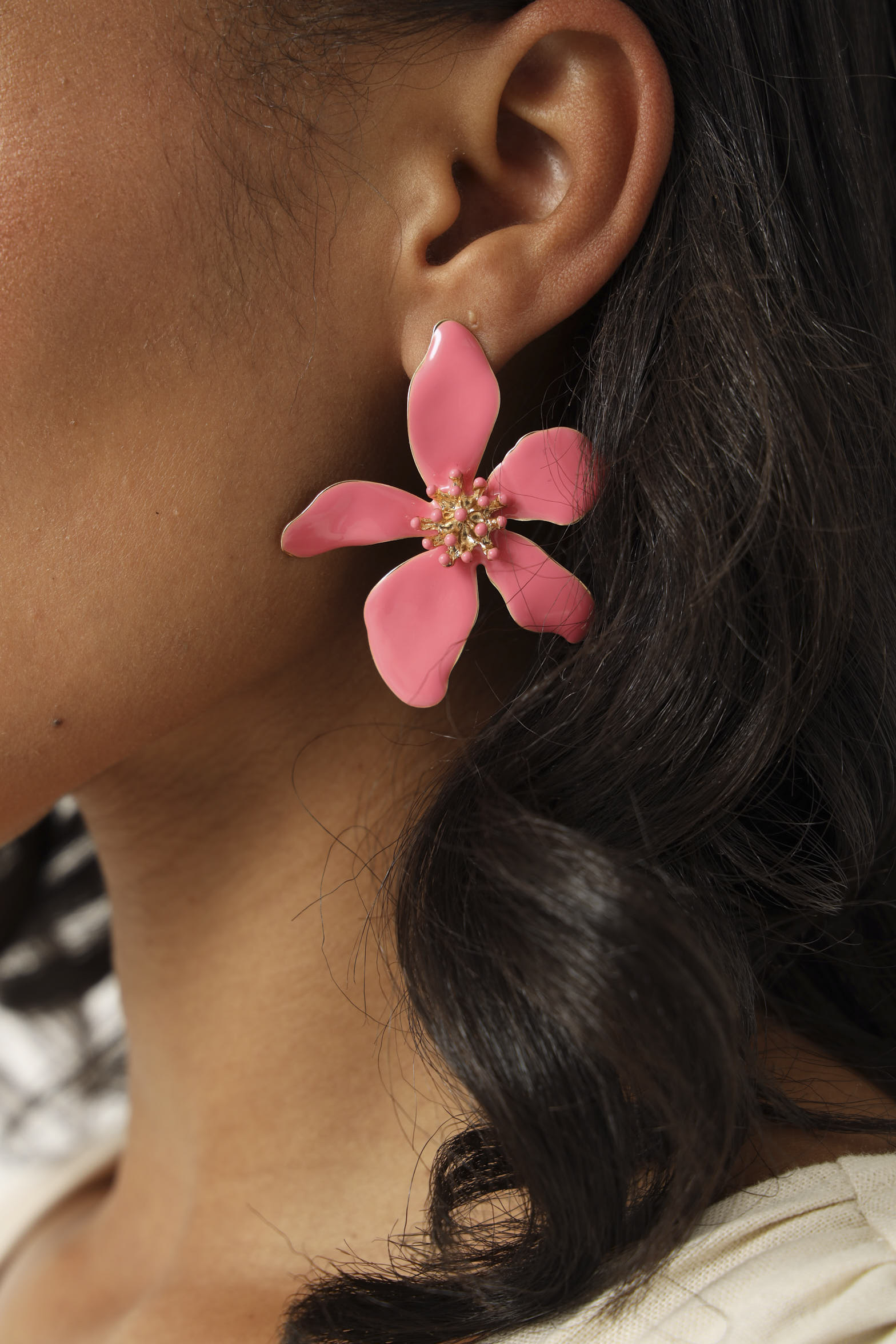Make a bold statement with these striking epoxy flower earrings in lustrous gold. Each piece features intricate floral detailing crafted from high-quality epoxy resin, combining lightweight comfort with eye-catching style. The rich gold finish adds warmth and sophistication to any look, from casual daywear to evening occasions. Perfect for those who love nature-inspired jewellery with contemporary flair. Elevate your accessory collection with these versatile statement earrings that effortlessly transition from day to night.