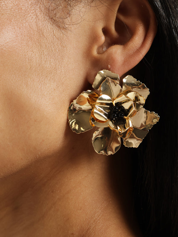 Flower Statement Earrings - Gold
