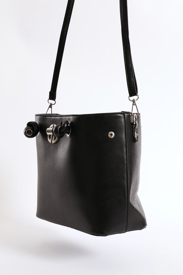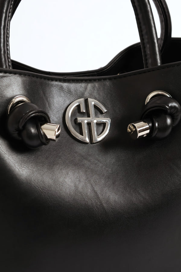 Front Knot Detail Metal Logo Tote Bag - Black/Silver