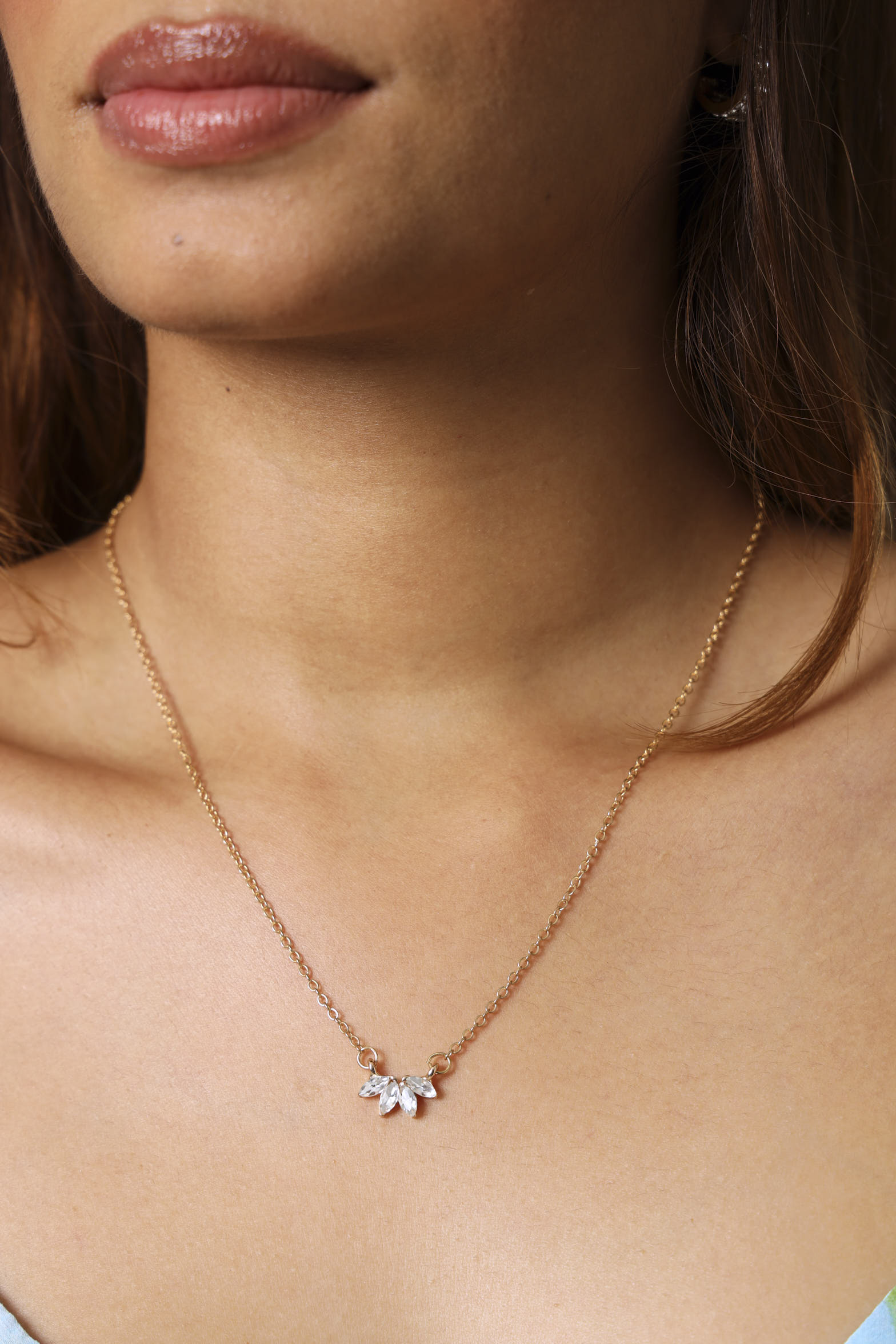 Sparkle and shine with this gorgeous gem fan pendant necklace that's basically a tiny work of art hanging around your neck. The geometric fan design catches the light beautifully, while the gold finish adds that luxe touch without the luxury price tag. Layer it with your other favourites or let it take centre stage—either way, you're winning. Perfect for elevating your everyday look or adding that final touch of glam to any outfit.