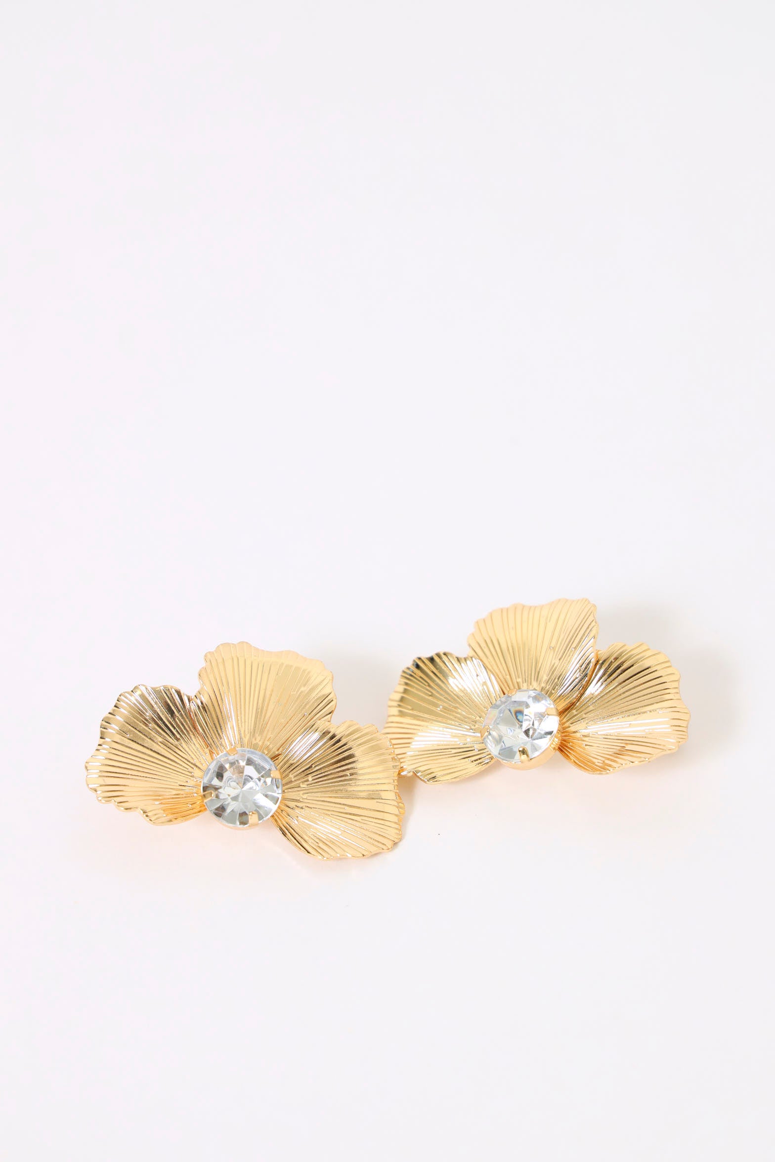 Bloom with confidence in these delightful half flower diamante earrings that catch light from every angle. Crafted in warm gold, they're the perfect balance of dainty and dazzling—ideal for everyday wear or special occasions. These playful studs add just enough sparkle to make you smile without overwhelming your look, proving that the best accessories are the ones that make you feel like your best self.