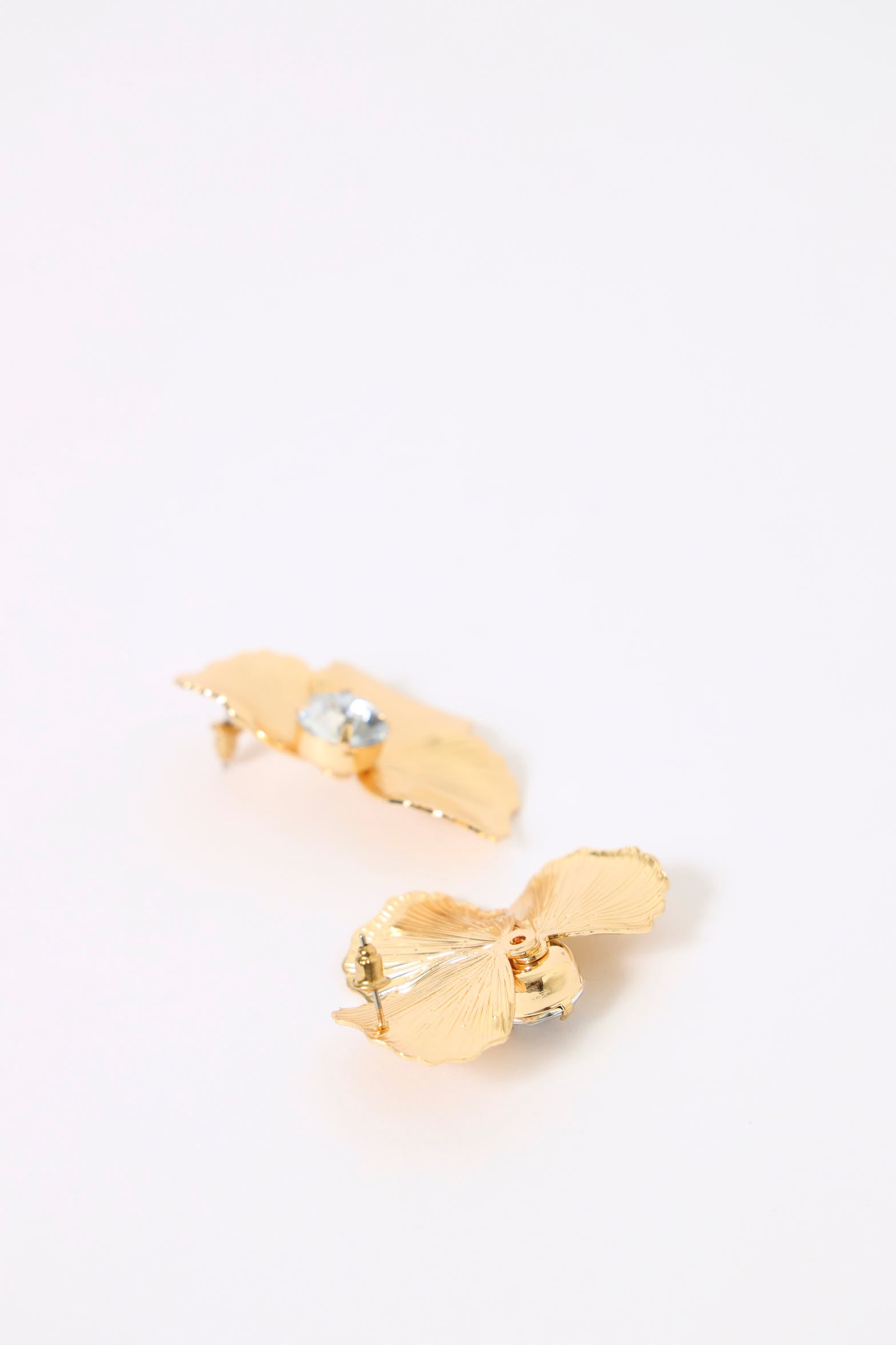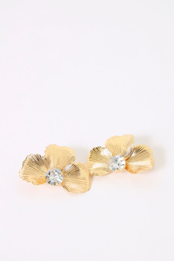 Half Flower Diamante Earrings - Gold