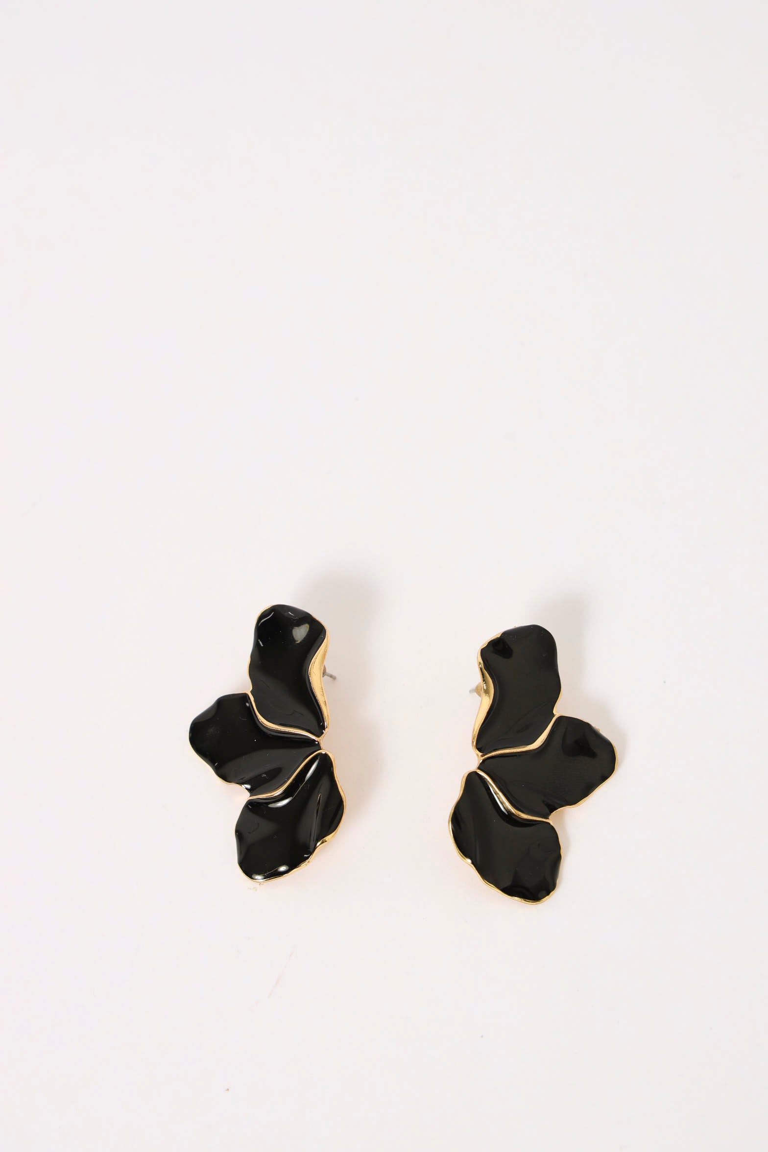 Half Flower Epoxy Statement Earring - Black