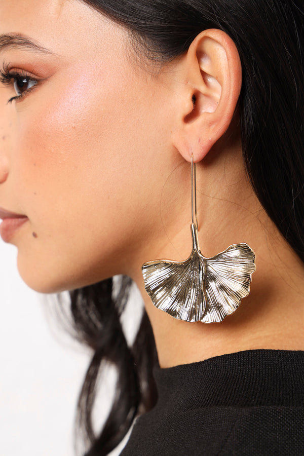 Hanging Metal Petal Earrings - Gold