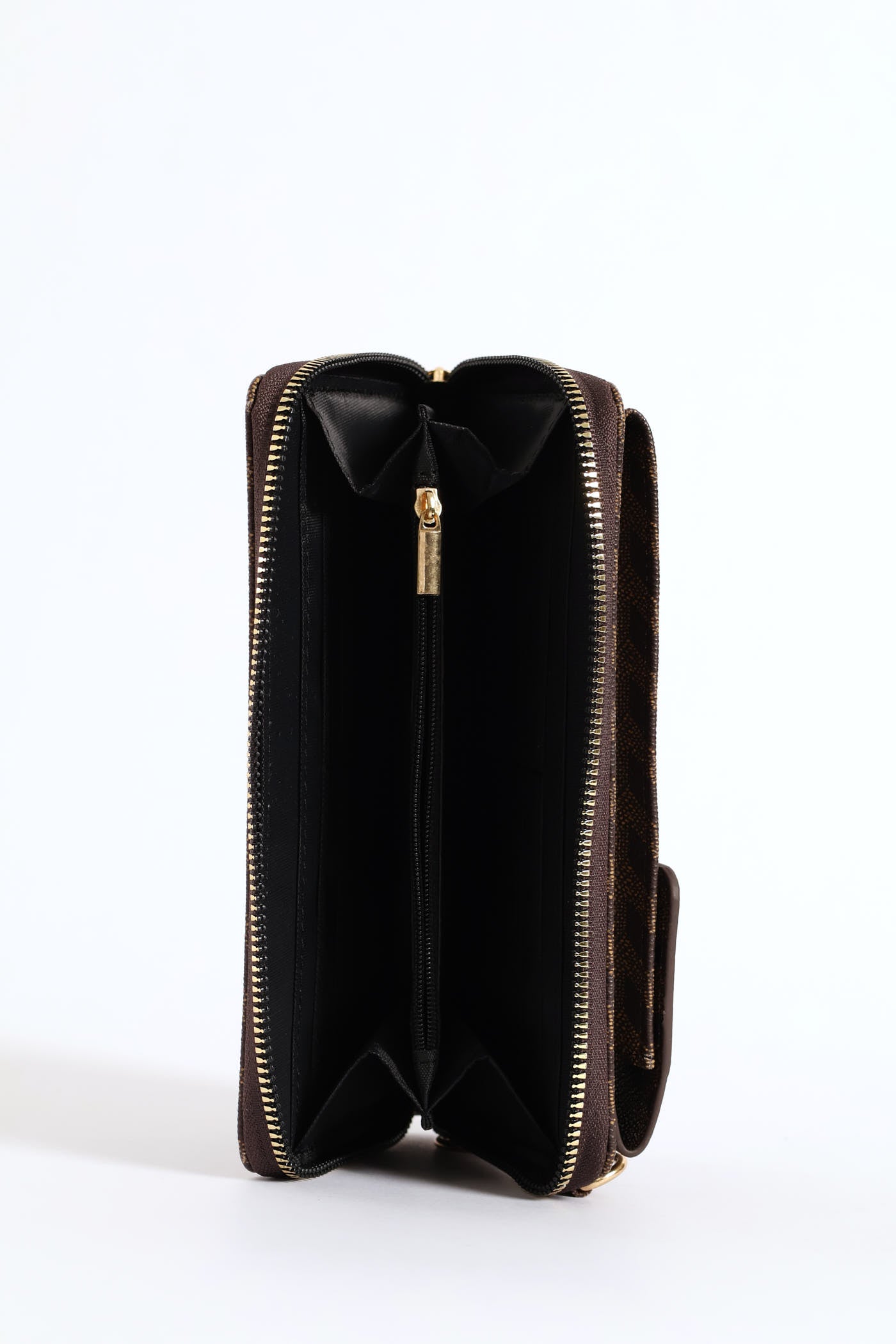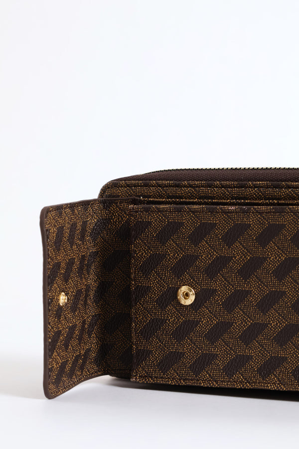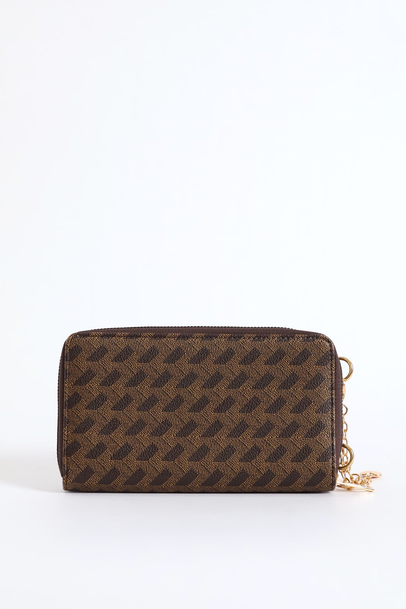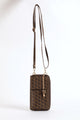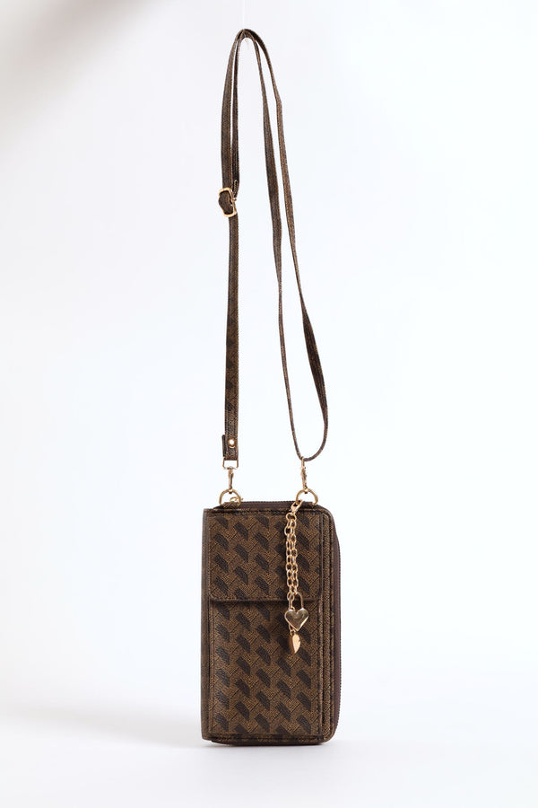Heart Charm Monogram Cellphone Satchel Bag - Brown